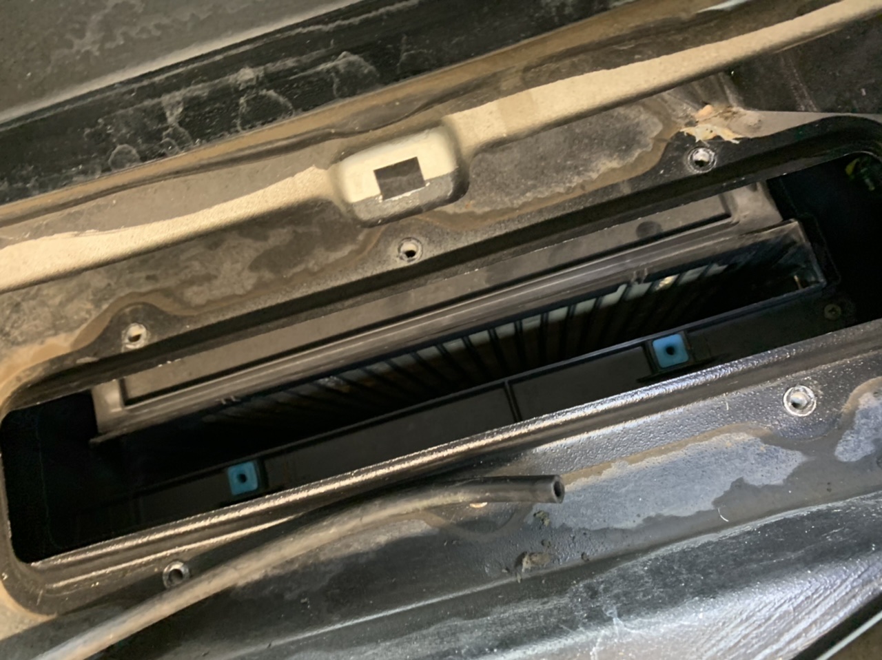 Donc pour changer le filtre à pollen, il faut enlever le tablier déjà en photo plus haut.