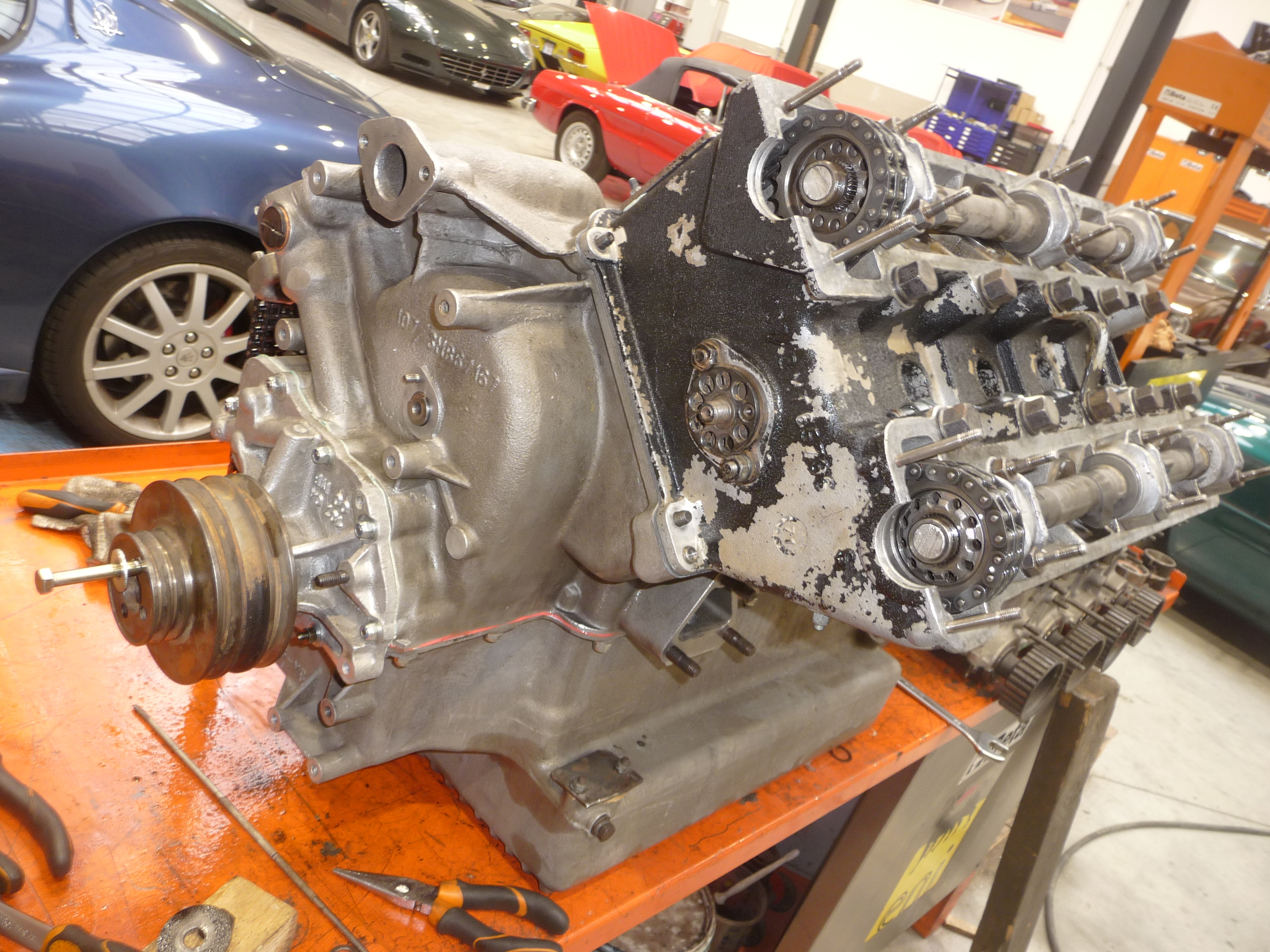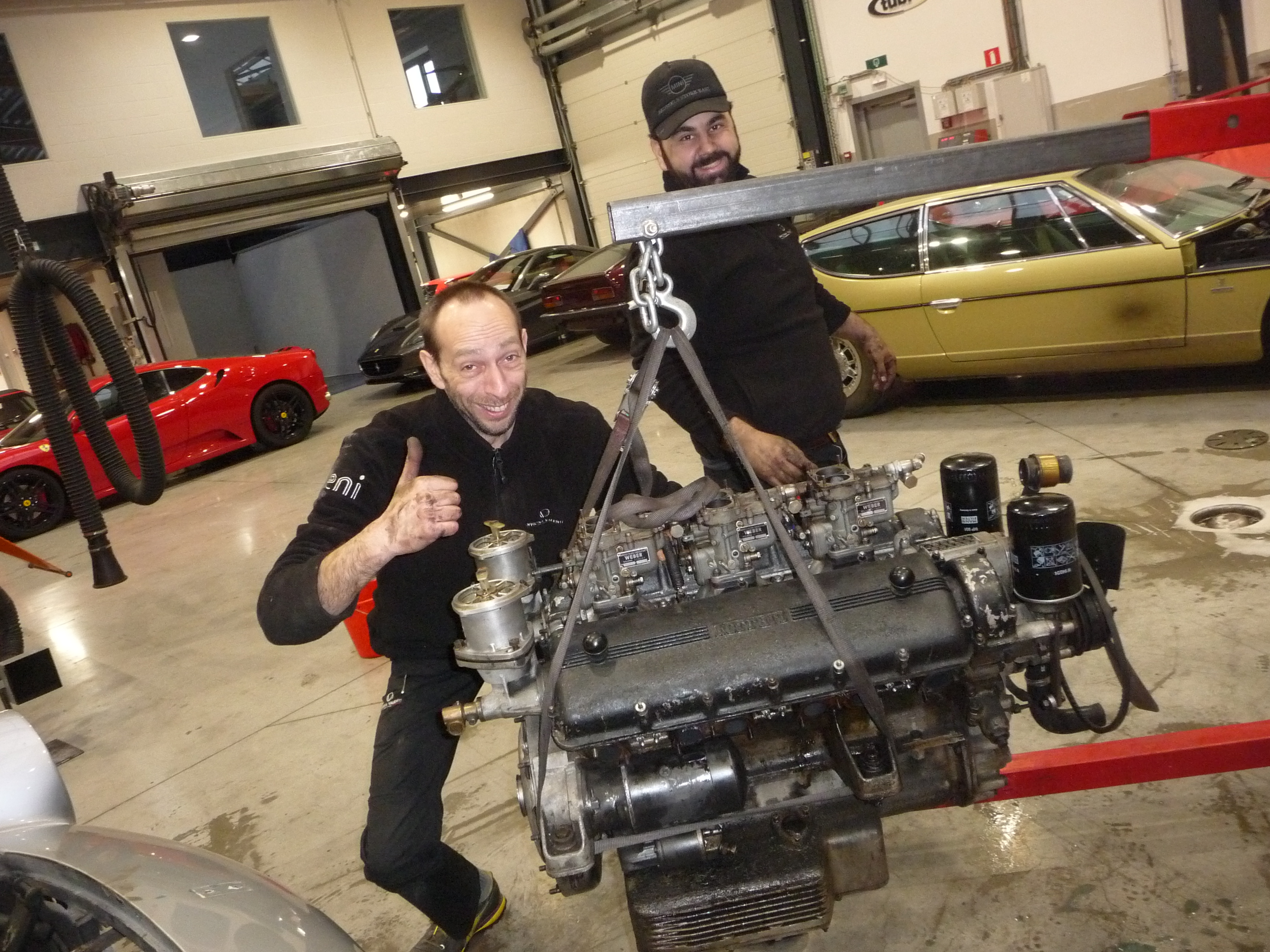Aujourd'hui, une opération assez simple d'extraction du V12 Colombo d'une 250 GTE.