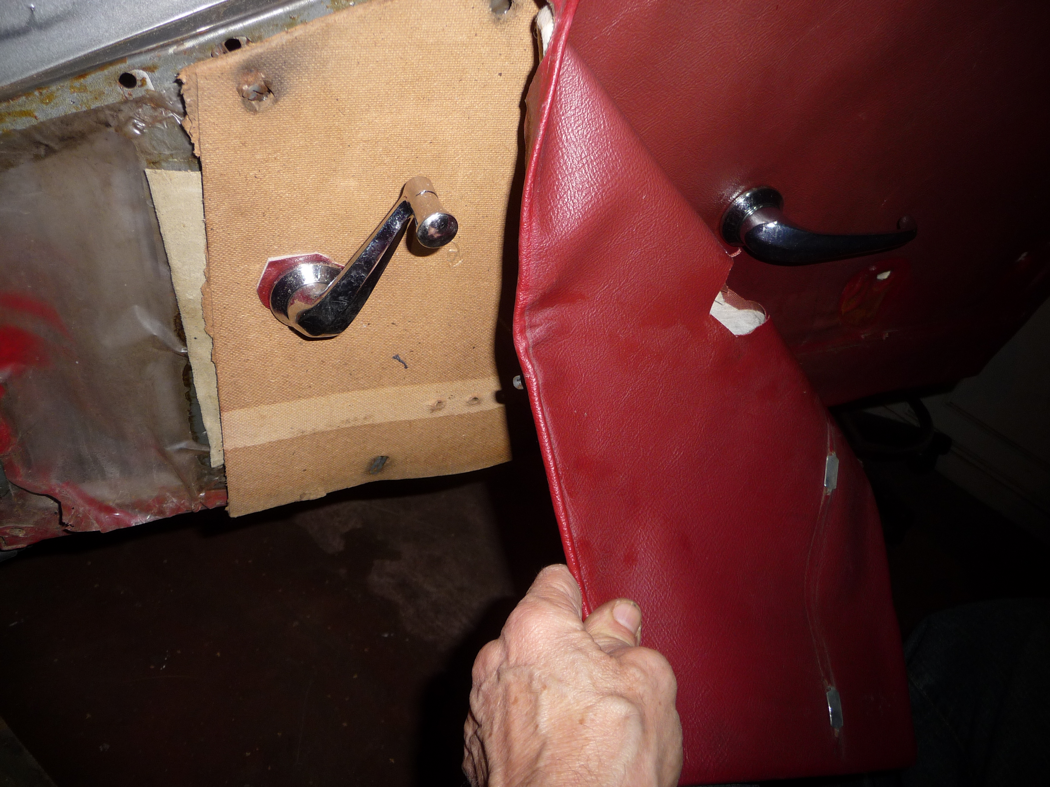 Il faut d'abord ôter l'accastillage: baguettes chromées, accoudoir, manivelle de fenêtre et poignée d'ouverture.