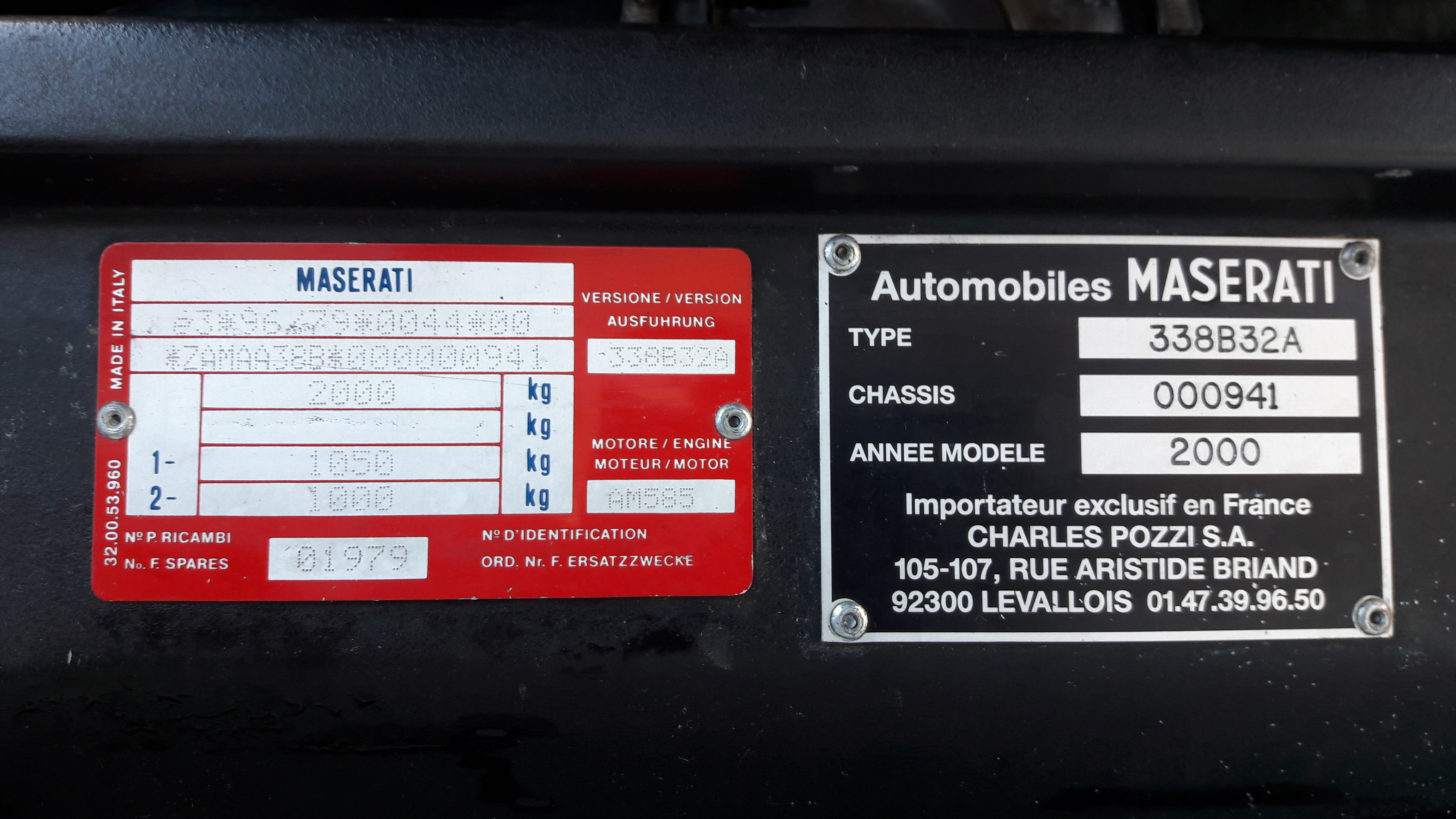 Je lis « N F 01979 » sur la plaque constructeur rouge et « Châssis 000941 » sur la plaque noire, donc bien en dessous de 4855.
