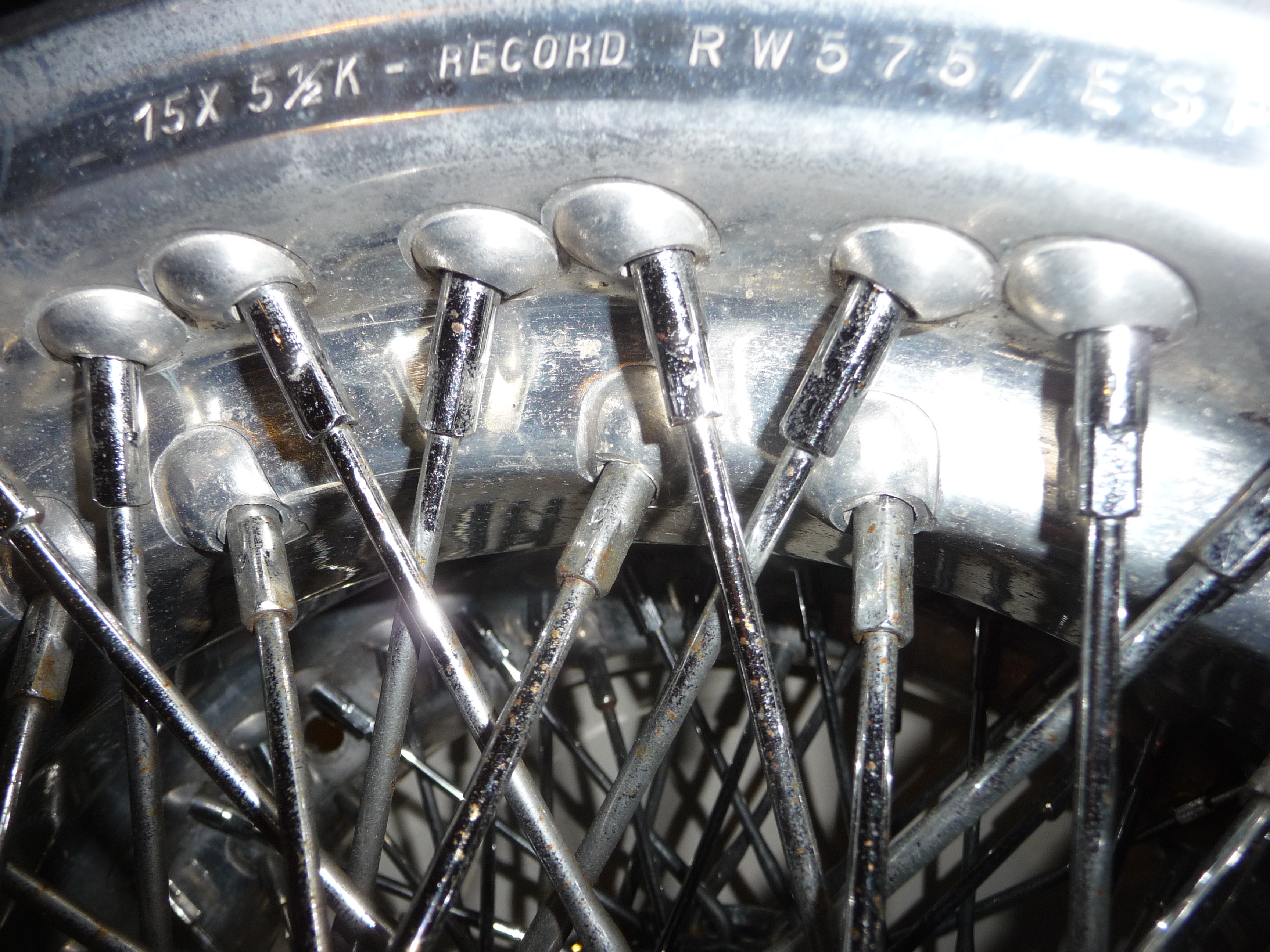 - soit complètement masquées dans la masse de la jante, jantes alors plus épaisses et donc plus robustes mais aussi plus lourdes, comme sur les roues de la Mexico déjà montrées, ou encore d'une Daytona ci-dessous :