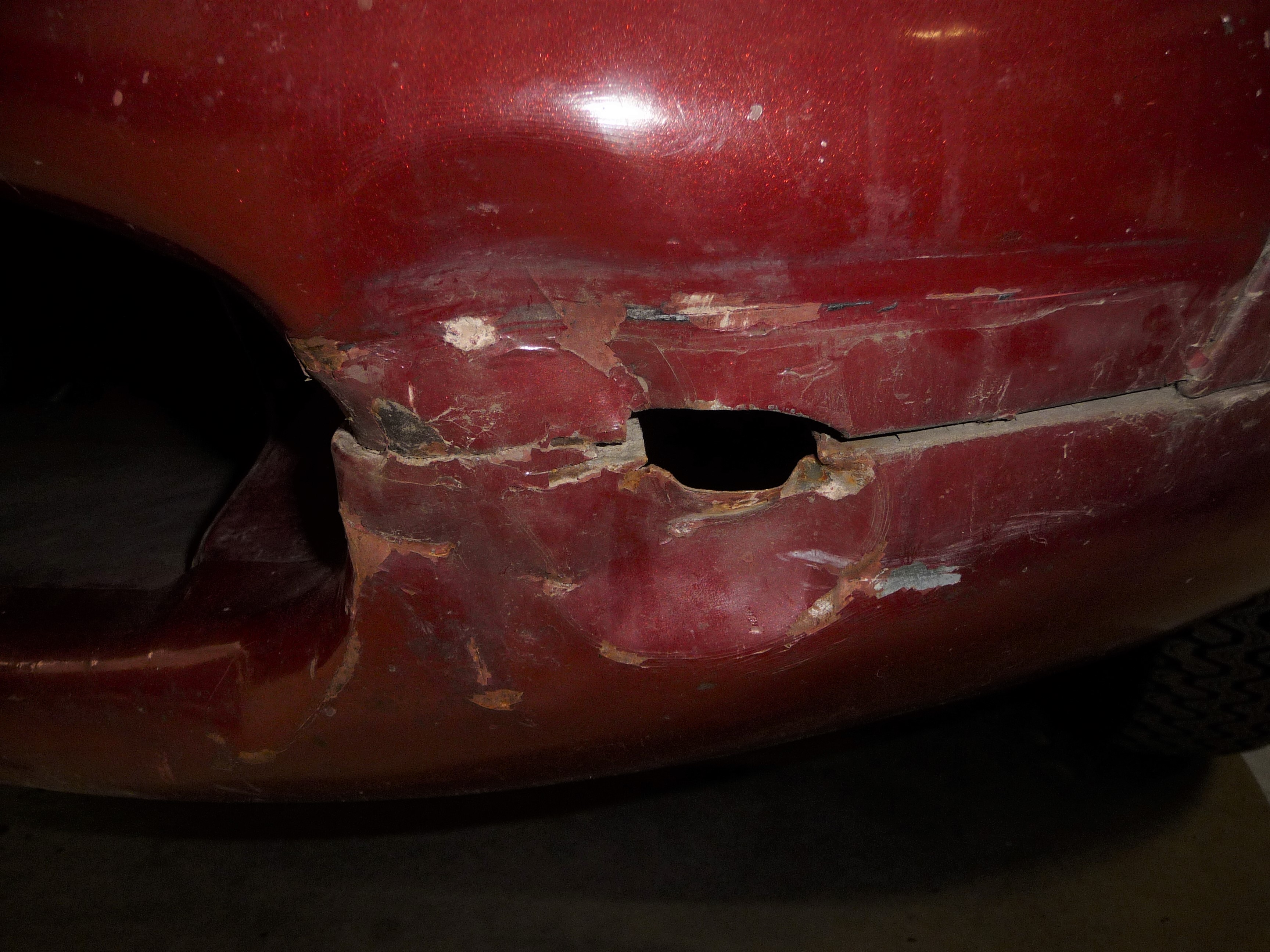 C'est ce qu'il y a de plus vilain sur toute cette carrosserie, avec des tôles bien enfoncées et une réparation antérieure avec du mastic.