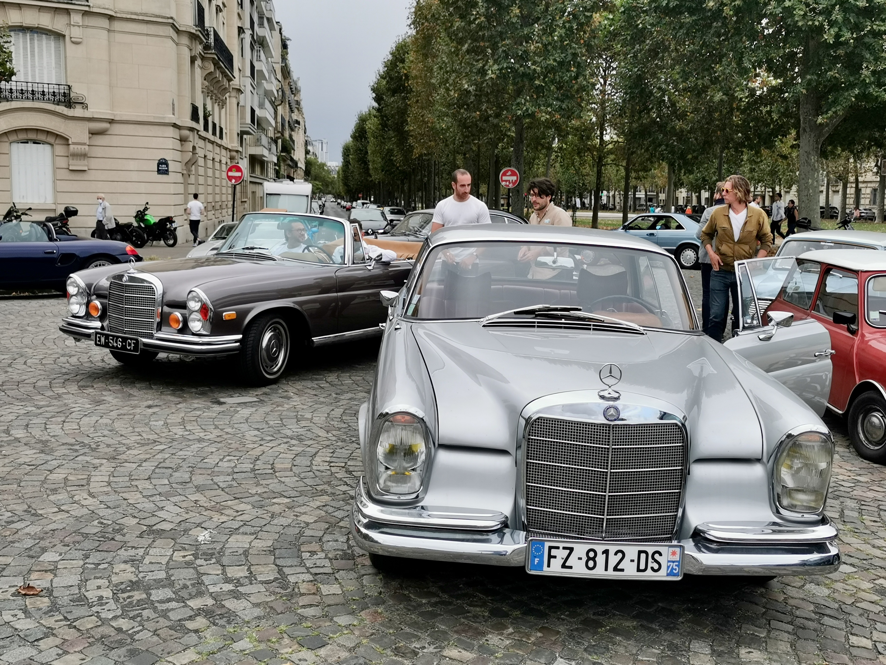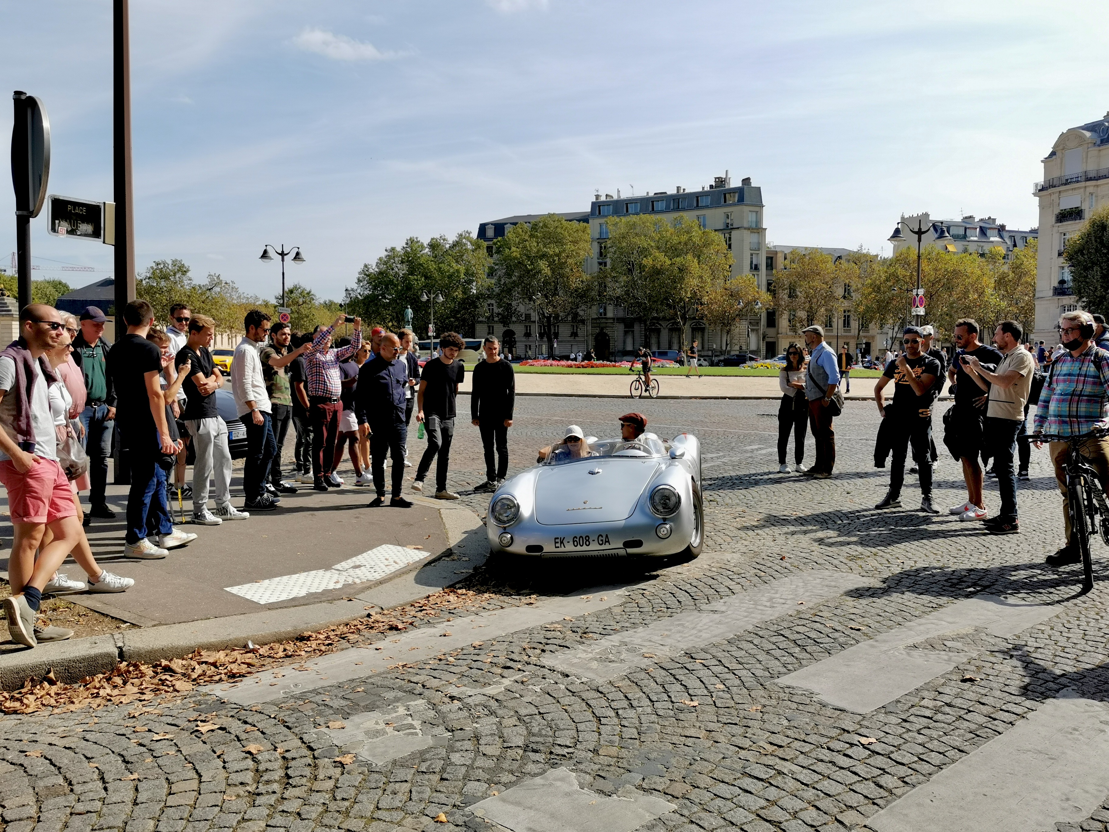Retour aux Invalides sous le soleil et rencontre avec des amis Porschistes.