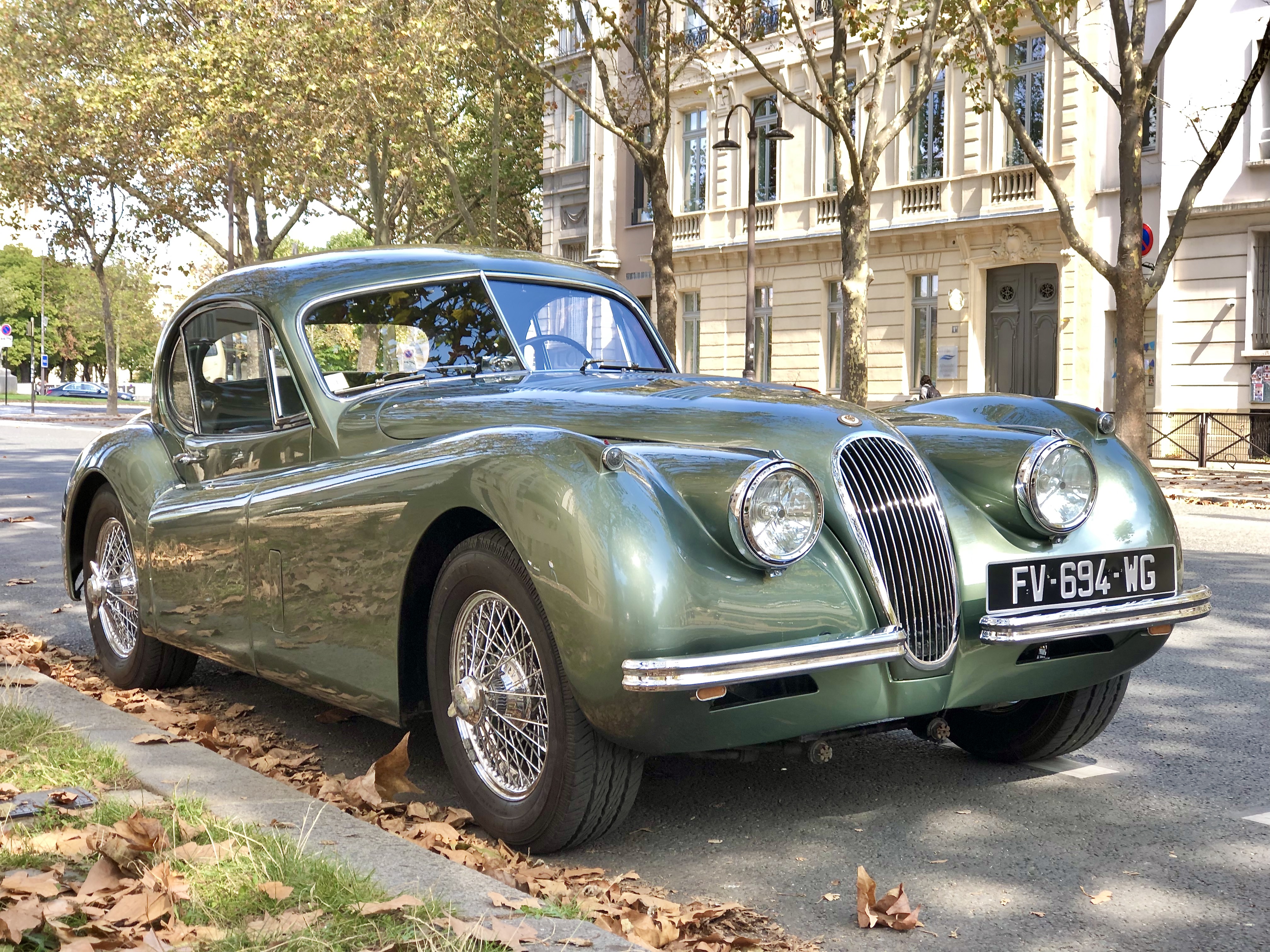 Ici une XK120: petits pare chocs, calandre à fines barettes, entre MKII et E type.