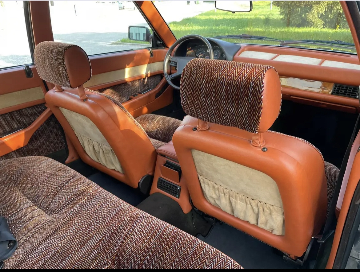 L’intérieur des 420 S, rosso ou argento, reprend l’intérieur Missoni des coupés Biturbo S avec le cuir orangé sur les assises et l’alcantara clair sur les côtés, sans boiseries sauf sur le tableau de bord :