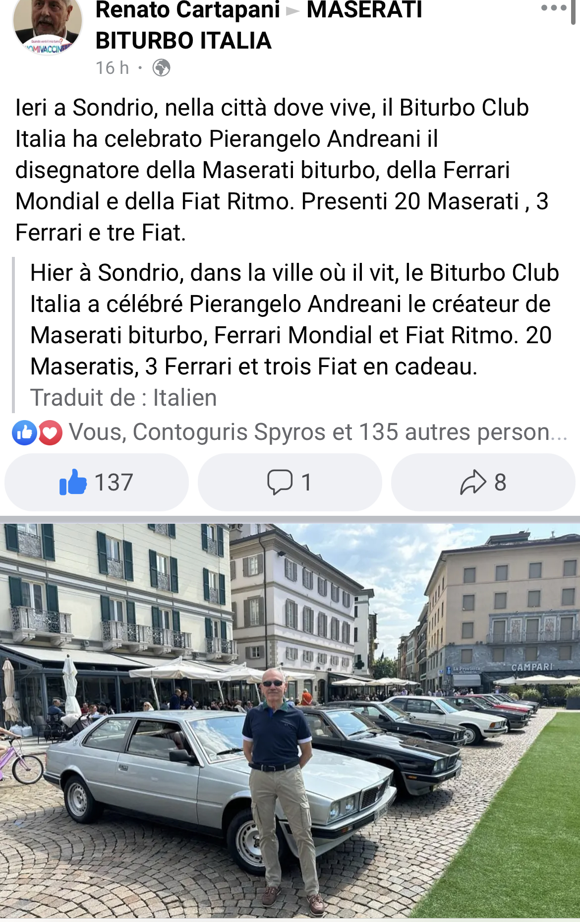 Fabuleux ! Merci Stefisa pour cette video où on voit au tout début Claudio Ivaldi, le président du Maserati Club Italia, présenter Pierangelo Andreani.