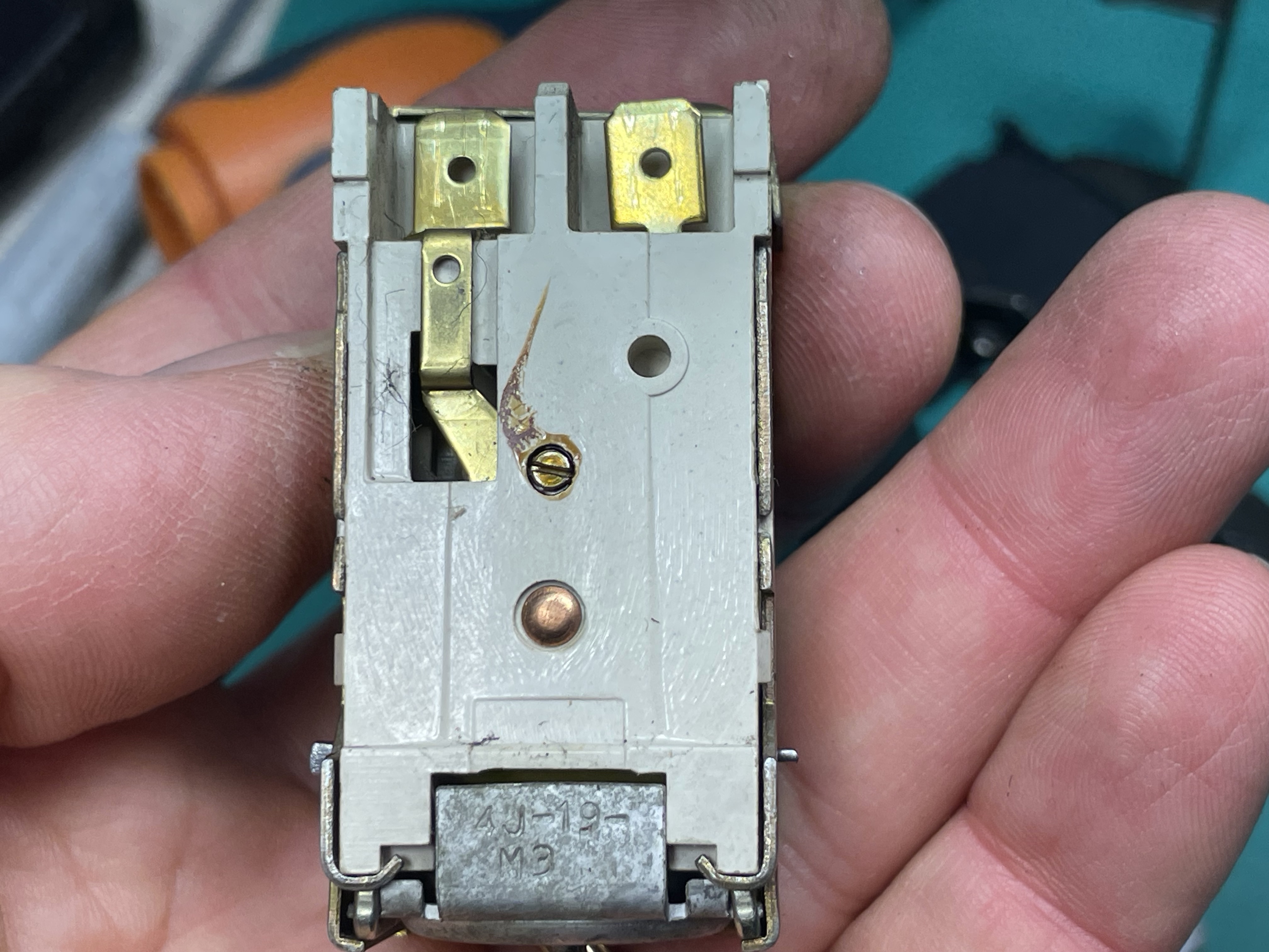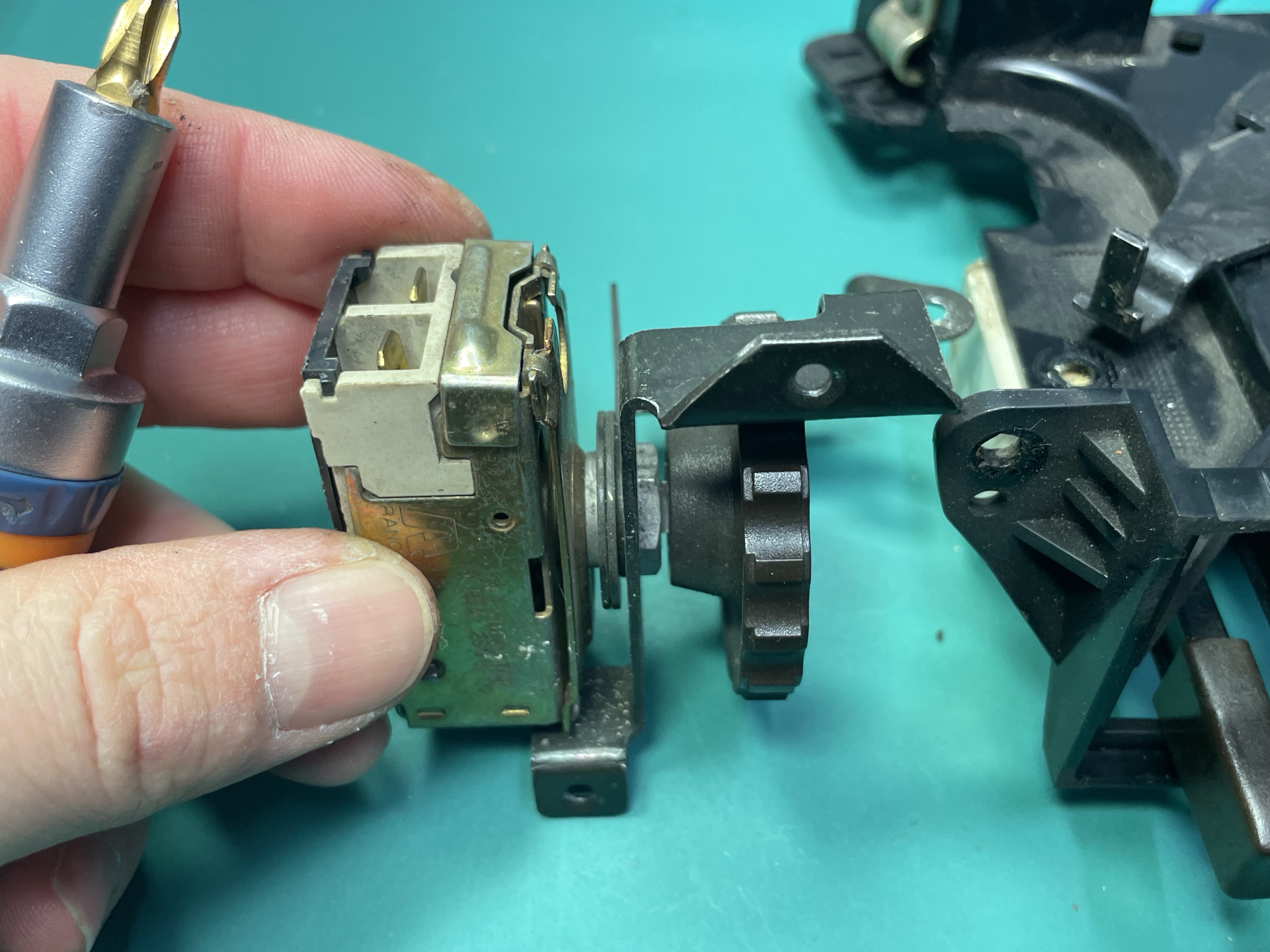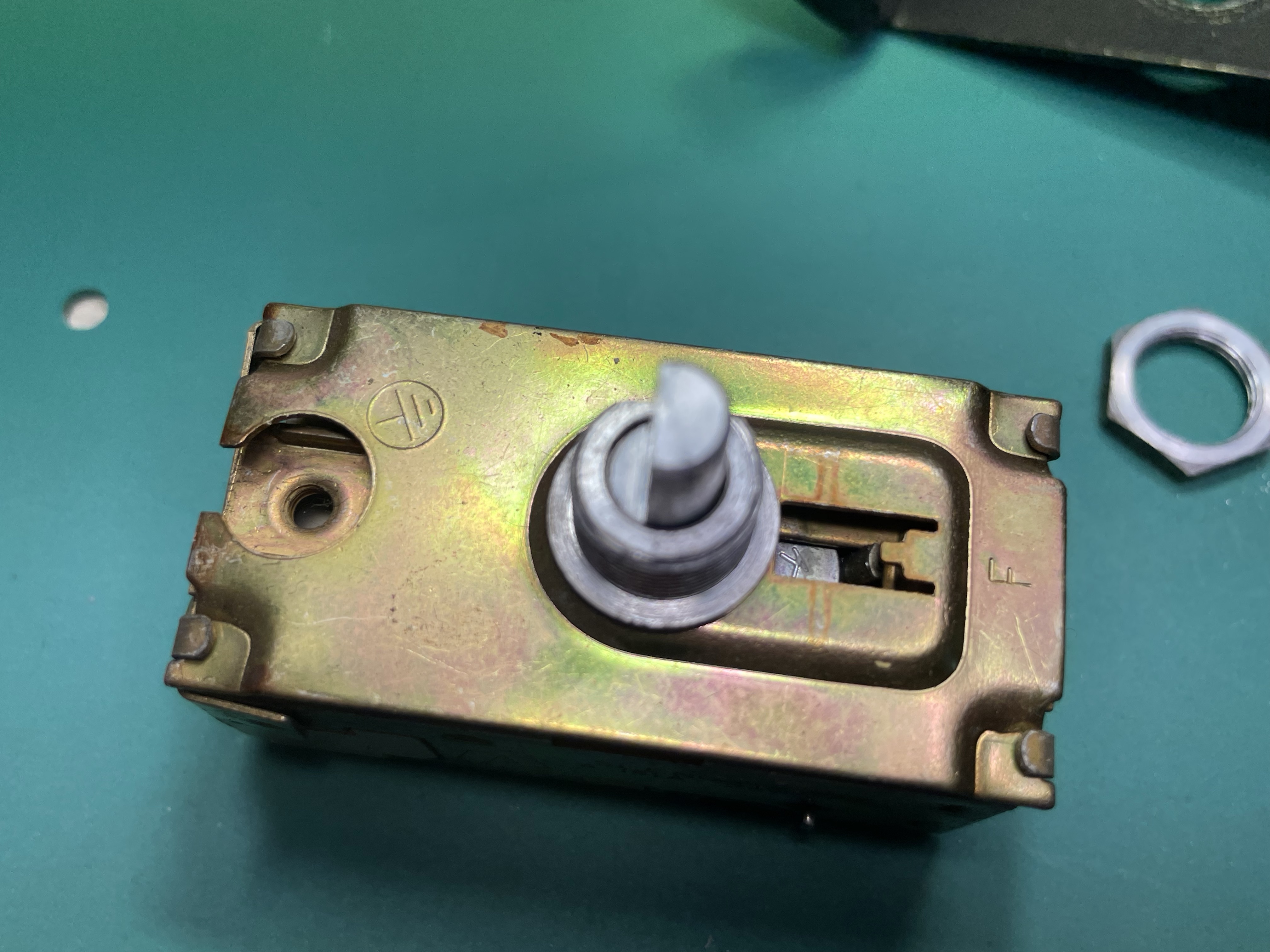Pour faire simple, à l’intérieur il y a une petite soupape avec une course très courte d’environ 1mm qui pousse un levier réglable avec un ressort de rappel et dont la course varie avec le réglage de la température. Ensuite ce levier vient pousser un interrupteur dont la course peut être aussi réglée, cela permet d’avoir plus ou moins de jeu sur la rotation de la commande… mais en réel la moitié de la course ne sert à rien mécaniquement…