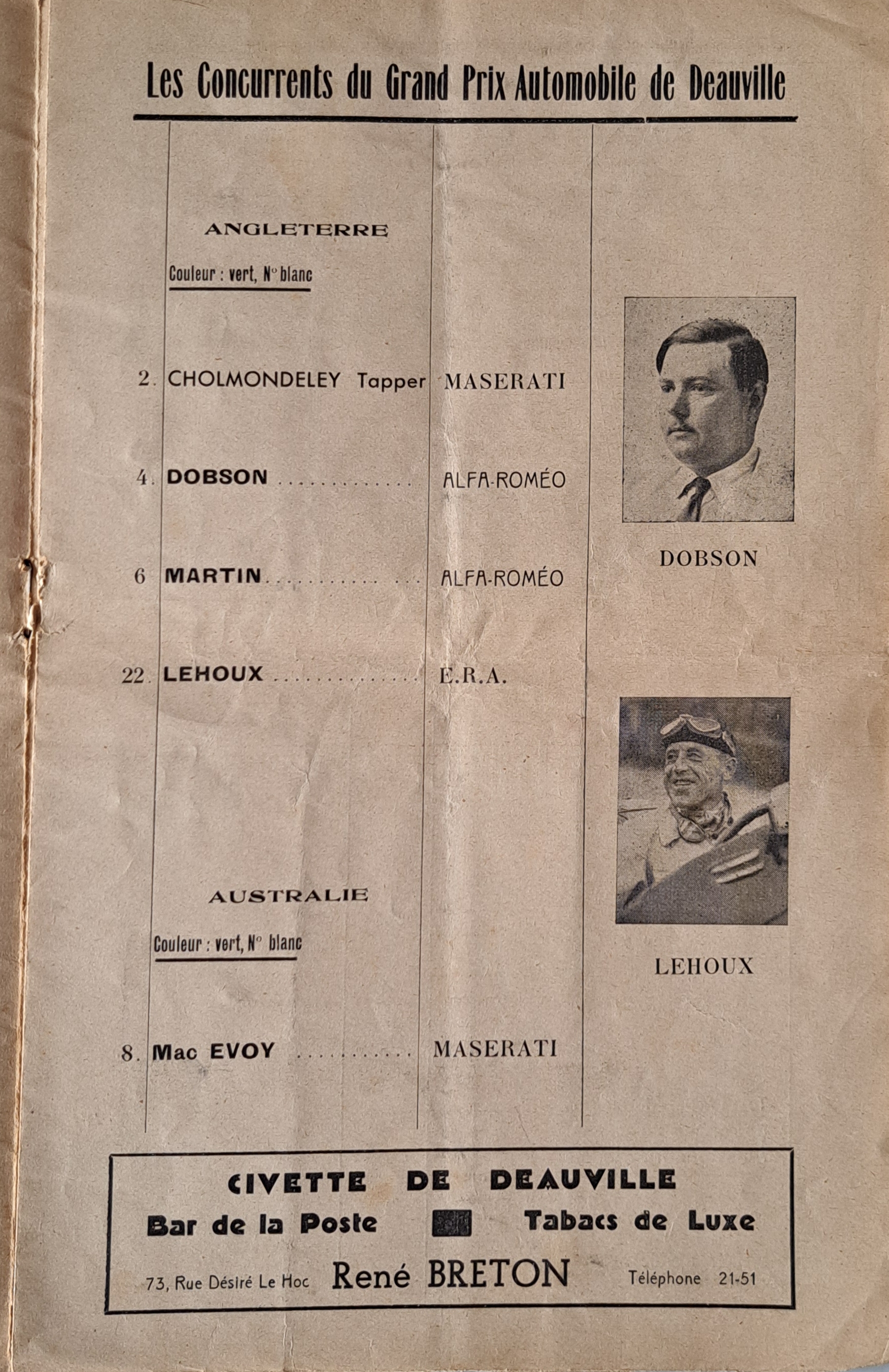 je vous poste qq pages de ce programme du GP de Deauville le 19 juillet 1936.