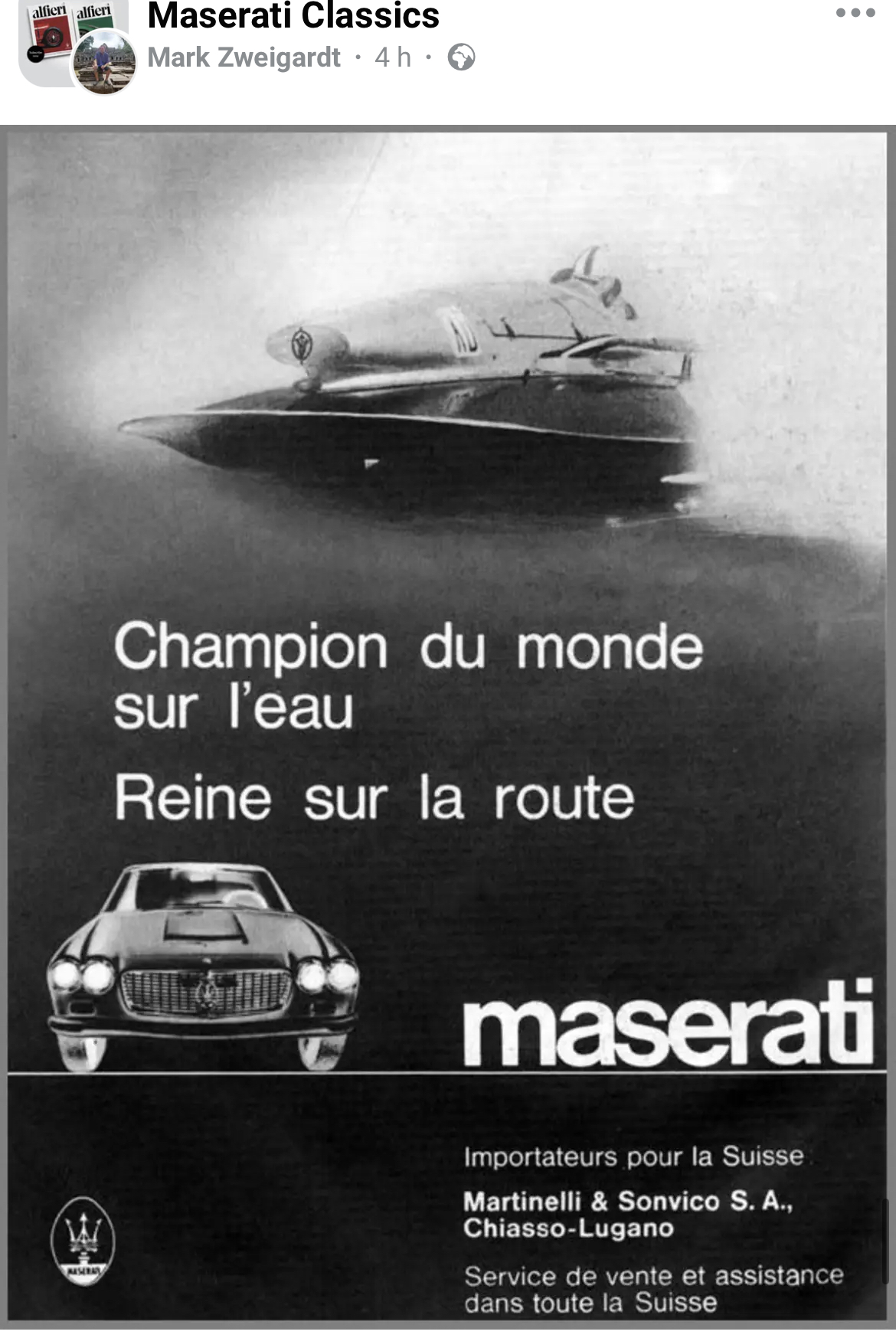 Publicité des années 60 du concessionnaire Maserati pour la Suisse :