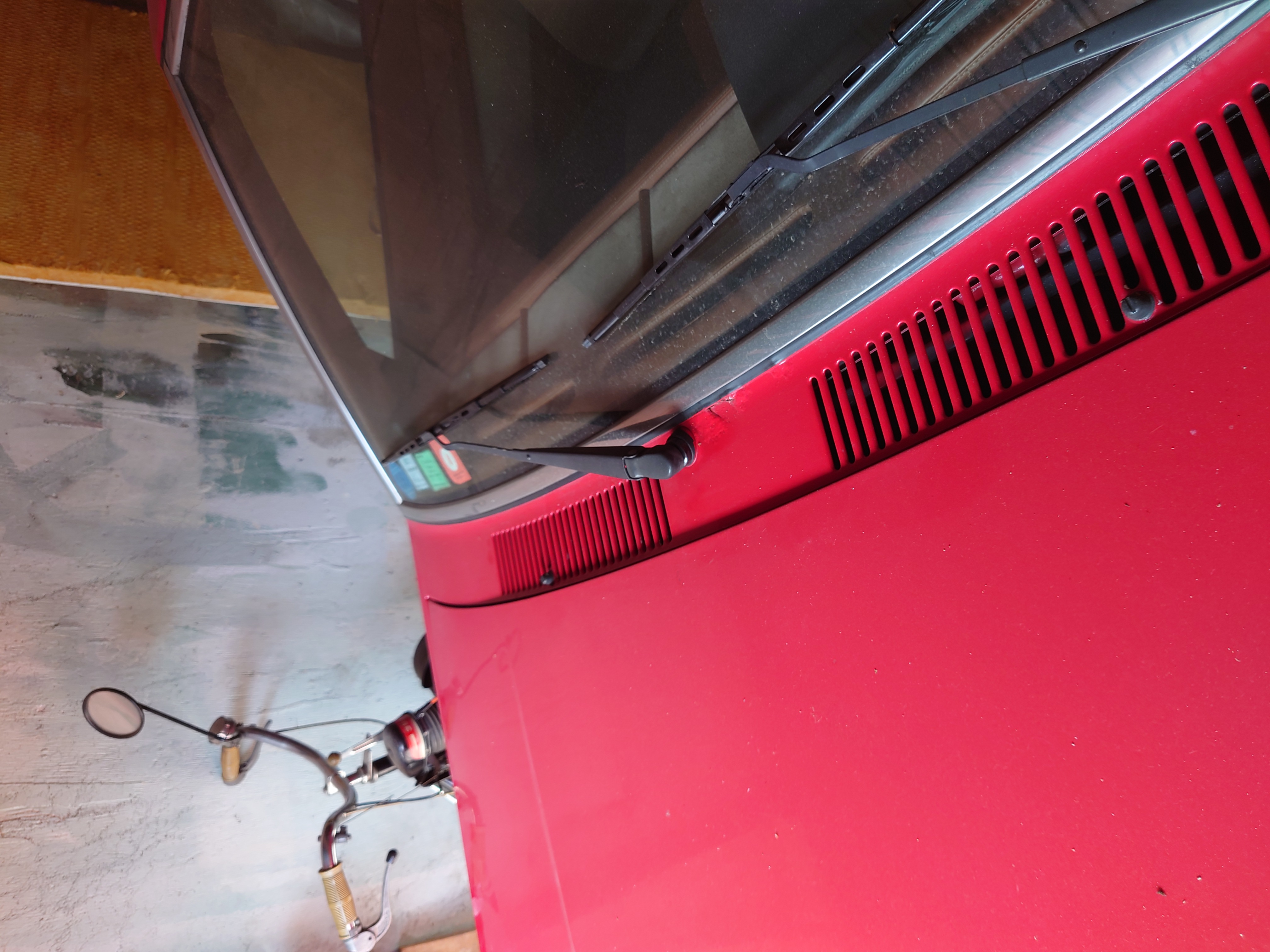 et puis... la rouille perforante au bas du pare brise...mais là Gemini est en train de me chercher le joint qu'il avait acheté pour sa voiture (ainsi que le pare-brise) et qui ne correspondaient pas à son modèle!