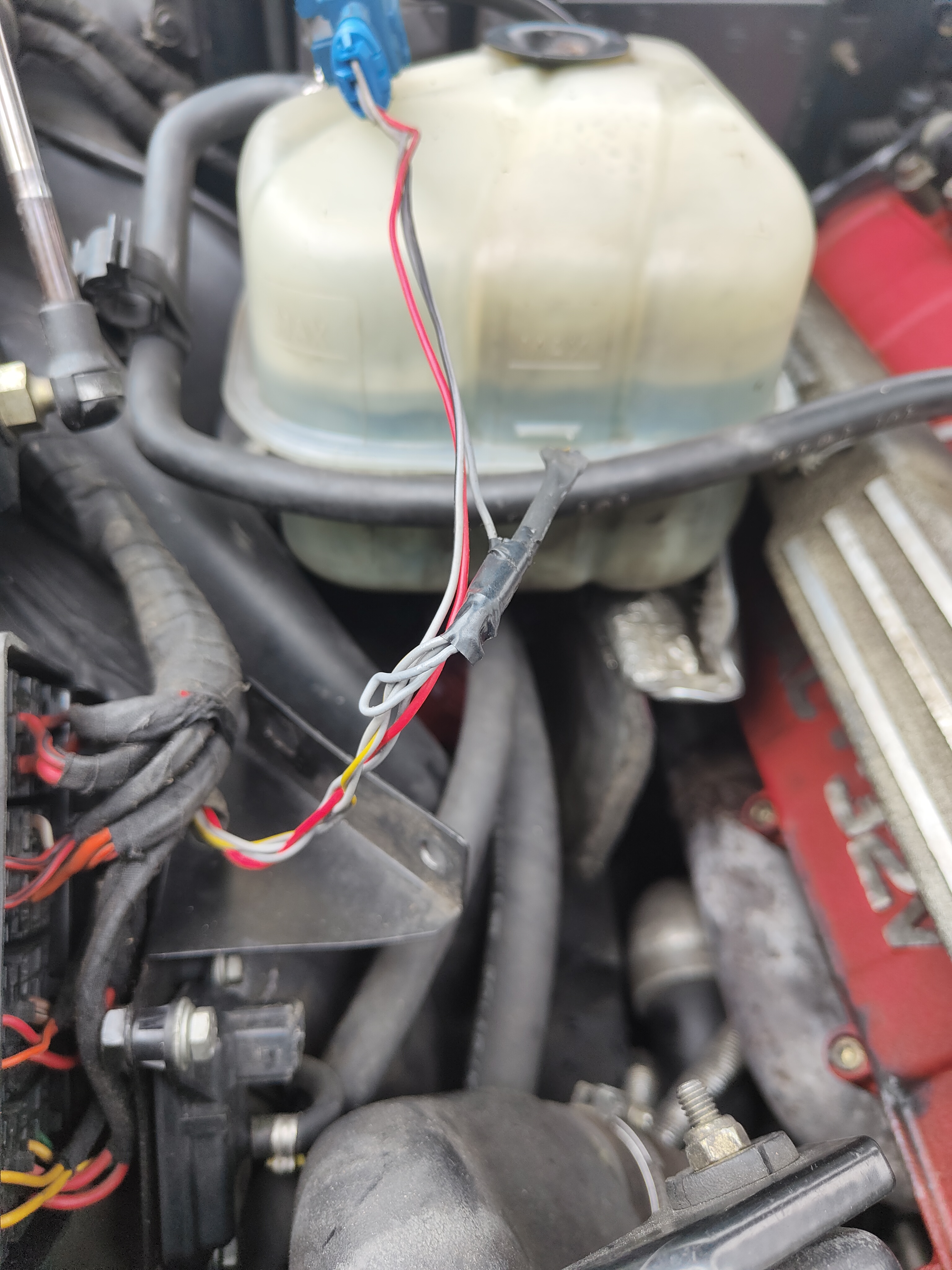 Petit découverte, au niveau de la boîte élec injection devant le vase d'expansion, connecteur du dessous bleu à 3 broches.
