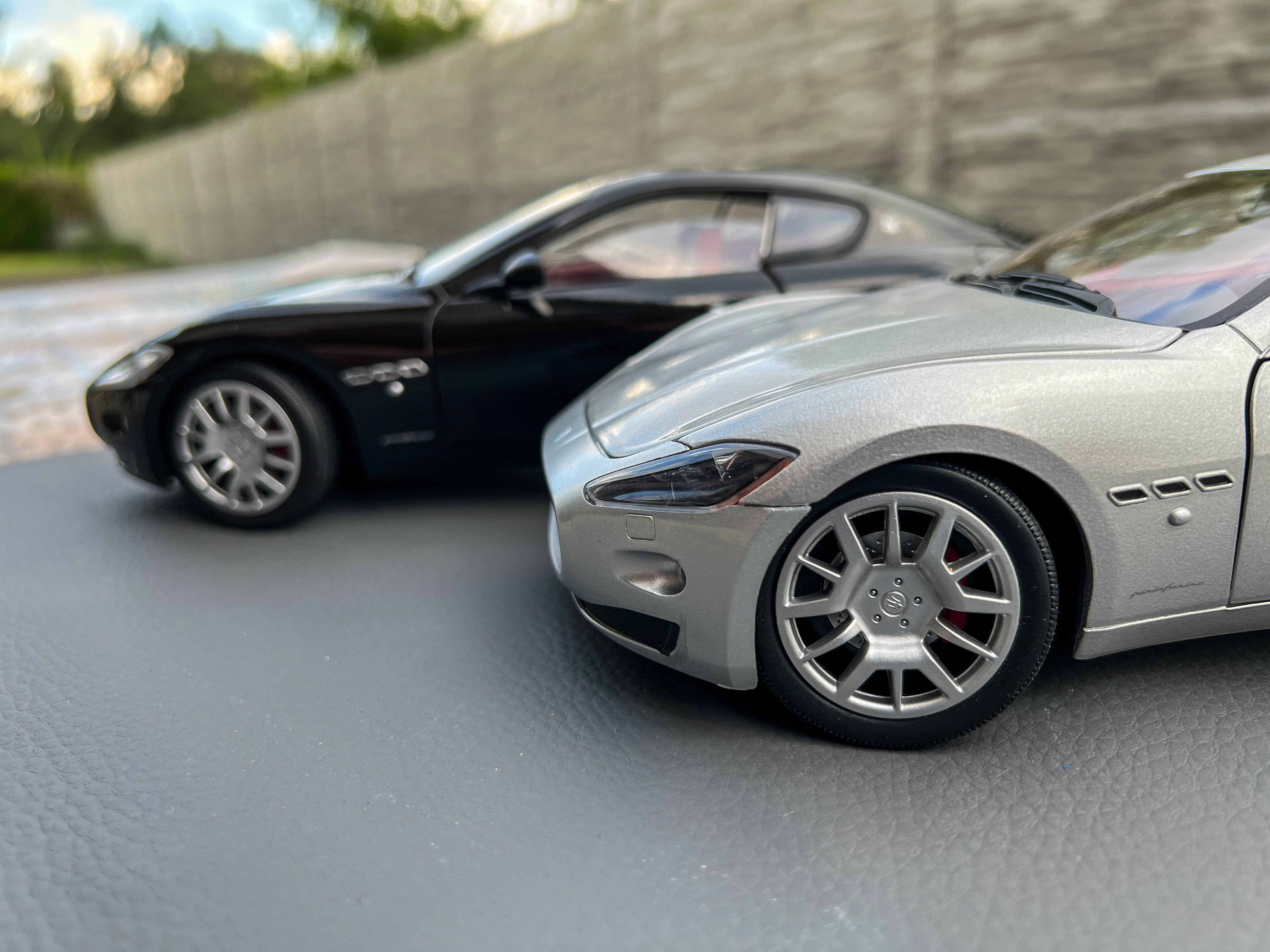 La grise est une Mondo Motors et la Noire une Motormax. J'ai raté il y a quelques temps les GT 1/18 TSM vendues ( bradées) sur le Maserati store.