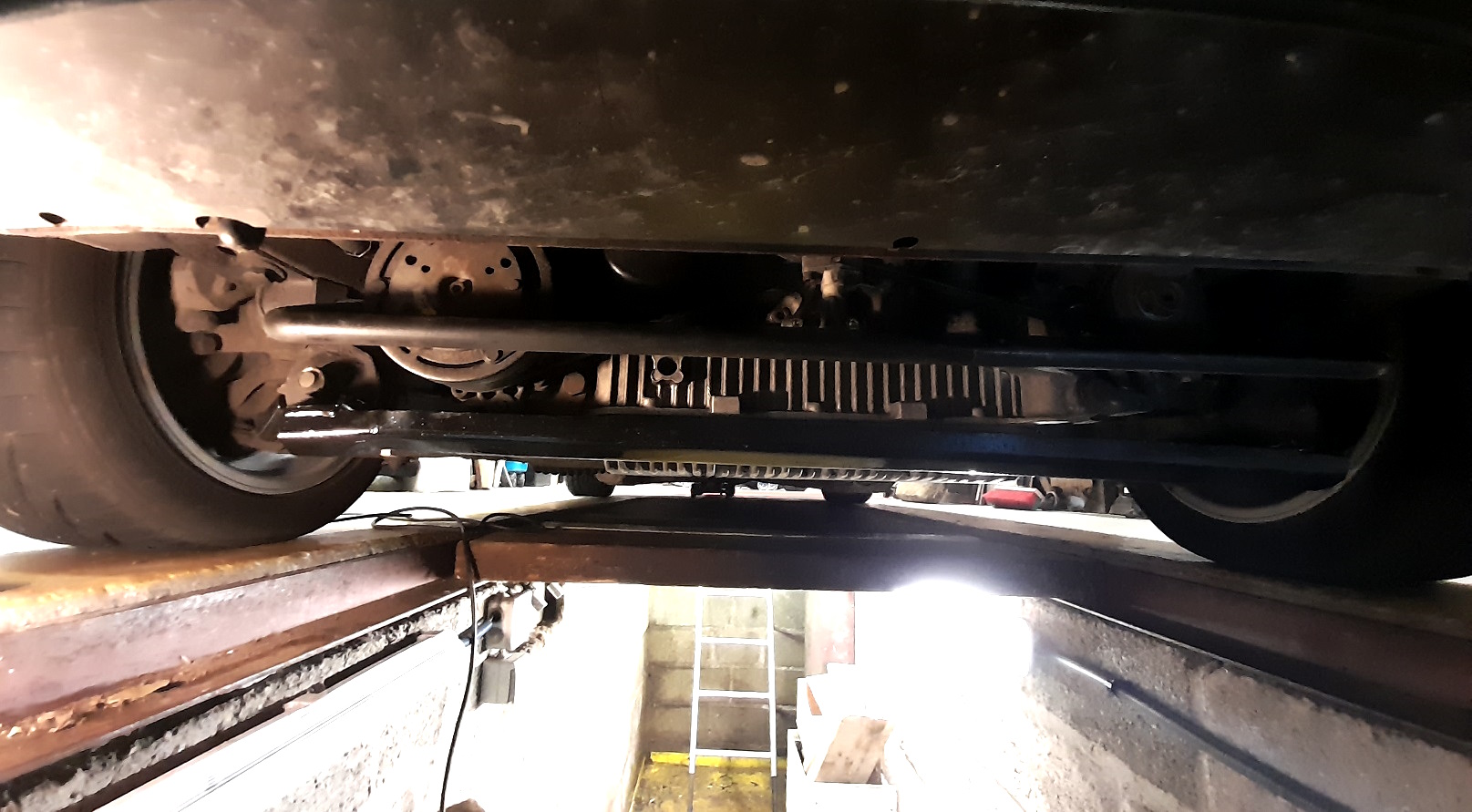 Pierre, tu as raison on ne voit pas super bien, mais la voiture n'est plus sur la fosse.