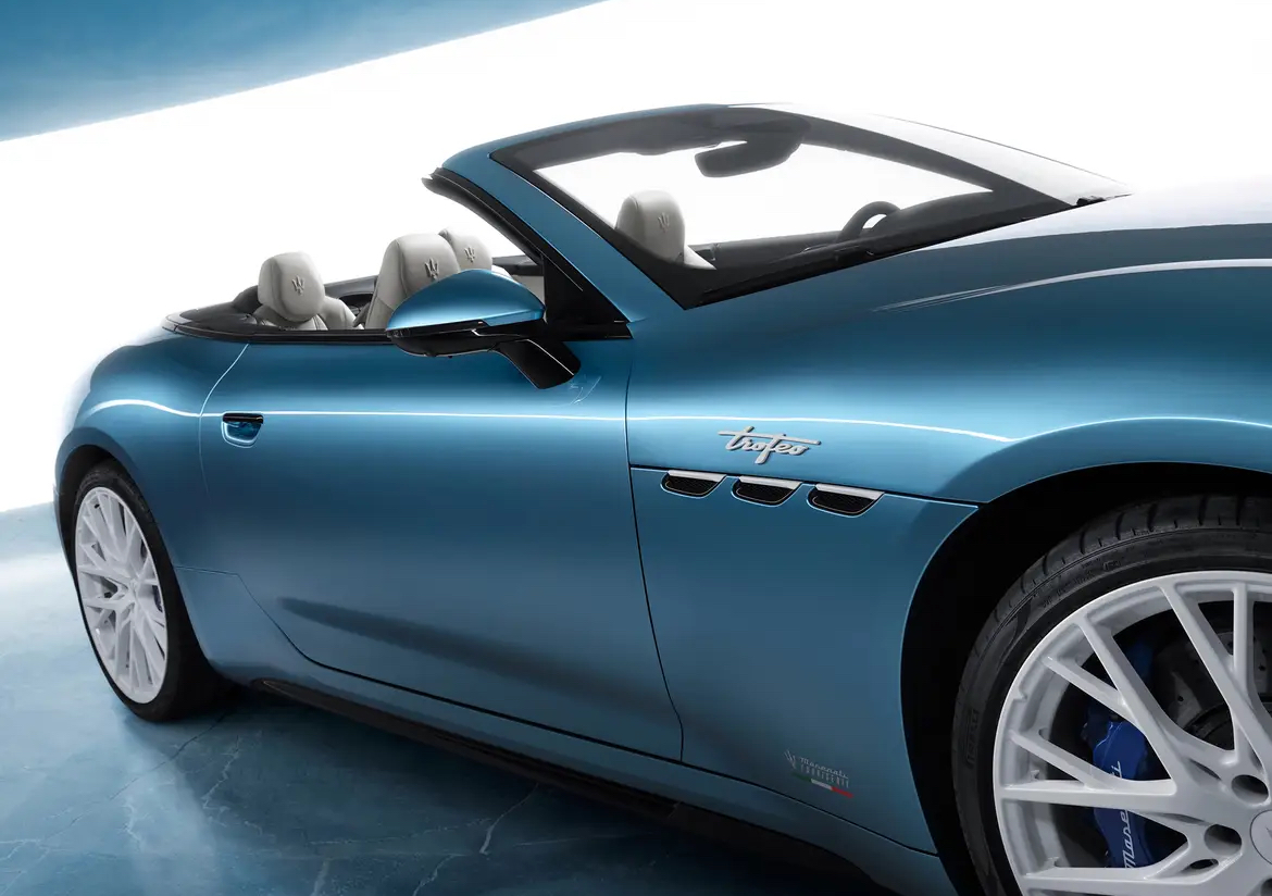 La couleur specifique de ce « one of » est appelée « Ice Liquid Tri-Coat ». Comme la GranCabrio « de base », la GranCabrio Trofeo possède les quatre roues motrices (d’où son aisance sur la neige) et la suspension hydropneumatique.