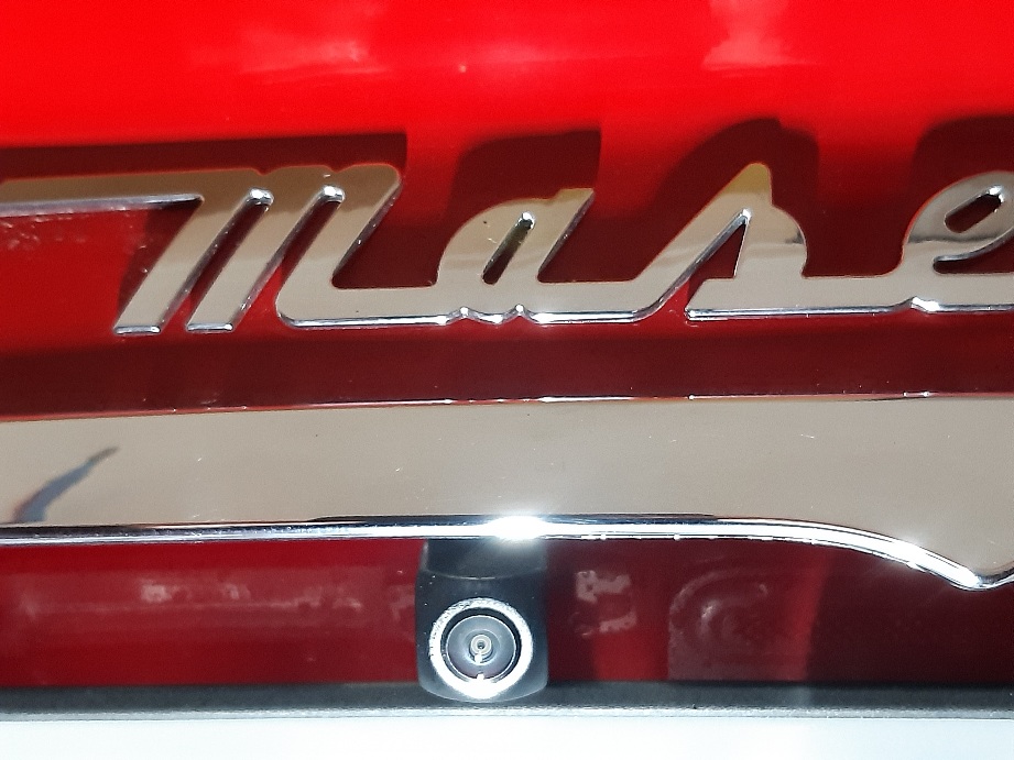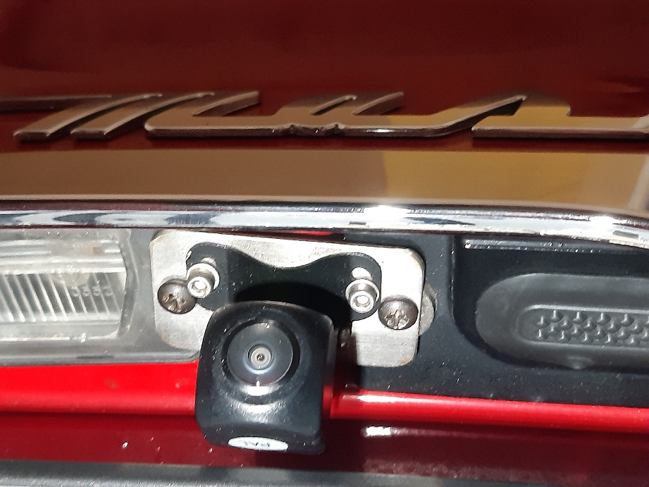 J'ai utilisé un support de plaques retourné afin qu'il serve comme support de caméra, et un profilé (fait maison) en aluminium laqué noir qui a servi de cache caméra. Pour les branchements c'est pas très compliqué car le module carplay/Android auto est prévu avec les entrées nécessaires, mais la aussi je ne me suis pas contenté de faire simple, puisque je voulais pouvoir actionner les caméras quand je le voulais, donc par exemple quand je dois effectuer une manœuvre en marche arrière je peux allumer la caméra avant, ceci a été possible avec l'aide de 2 doubles relais et un bouton de commande basculeur on/off/on que j'ai discrètement dissimulé sous la petite trappe dans le compartiment cendrier, j'en ai d'ailleurs profité pour installer une double prise USB au lieu de l'allume cigare. Voici les vues avant et arrière que j'ai, c'est vraiment très net.
