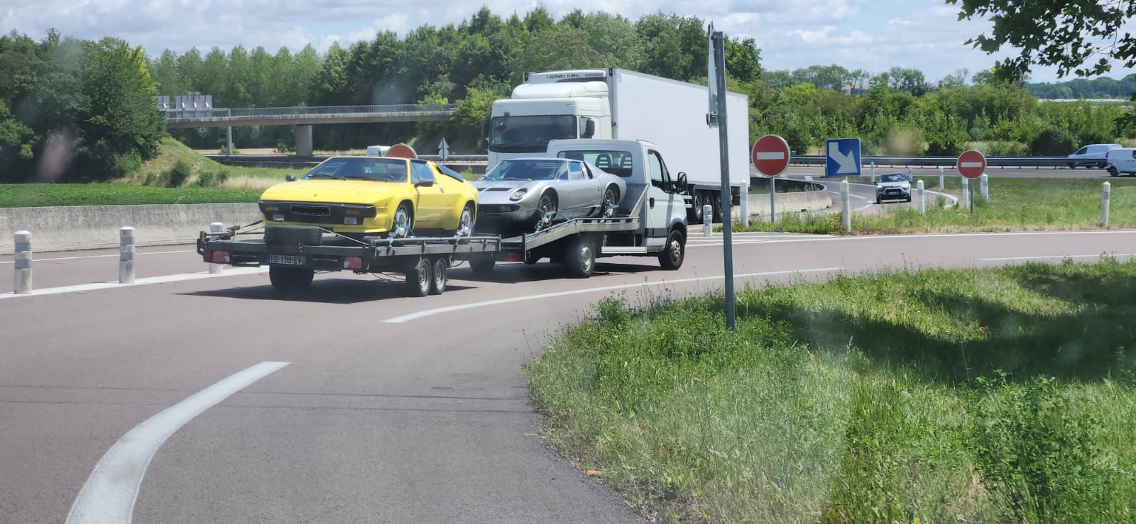 Bonne idée: on a suivi avec la Ghibli, avec une clim' efficace, elle..... Sur la route: Le dernier plein: on se retrouve, juste avant Bordeaux: Arrivée vendredi à St Emilion à 19h45 sur place, il y a du beau monde.... Et pendant le WE: En retrouvant la Ghibli dans le parking "voitures intéressantes" Parking Hotel Saintes dimanche soir. Avant que le transporteur viennent nous retrouver le lendemain matin pour charger. Et le lundi, en arrivant à Muizon (enfin...), photo souvenir à Gueux.... avant bière à la maison, et retour d'Axel & Theo en Alsace...