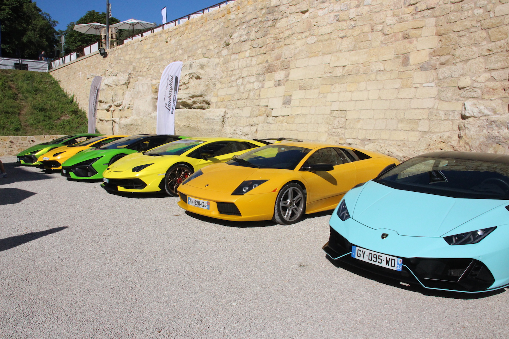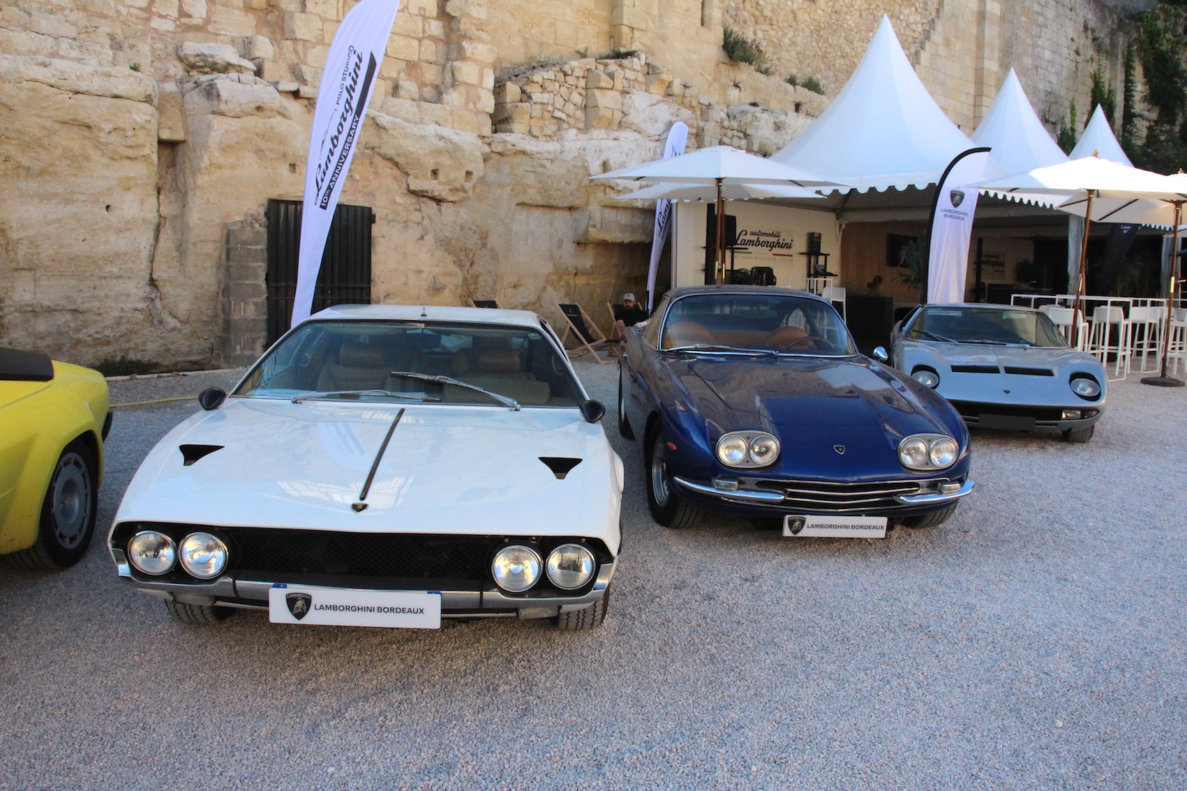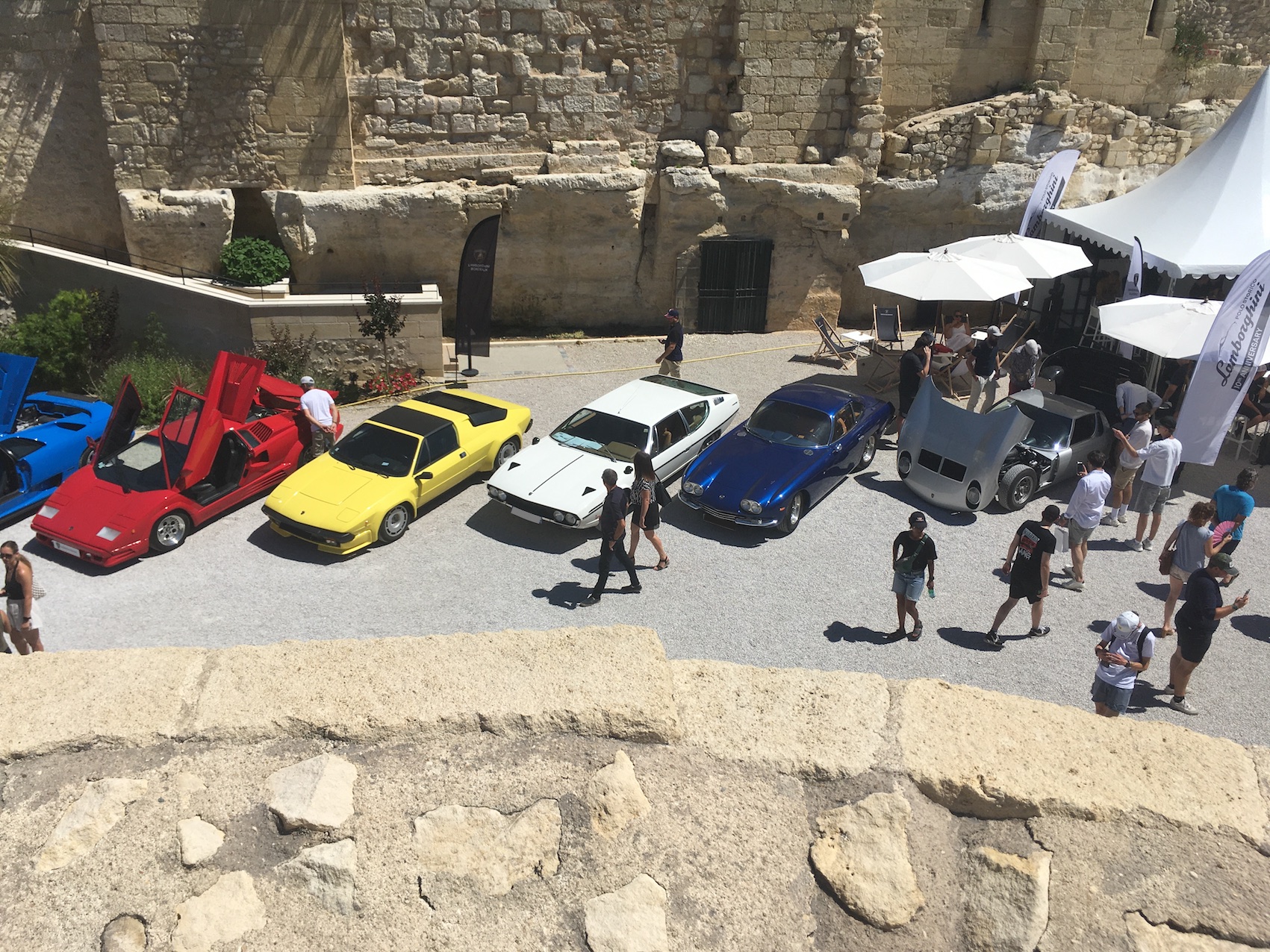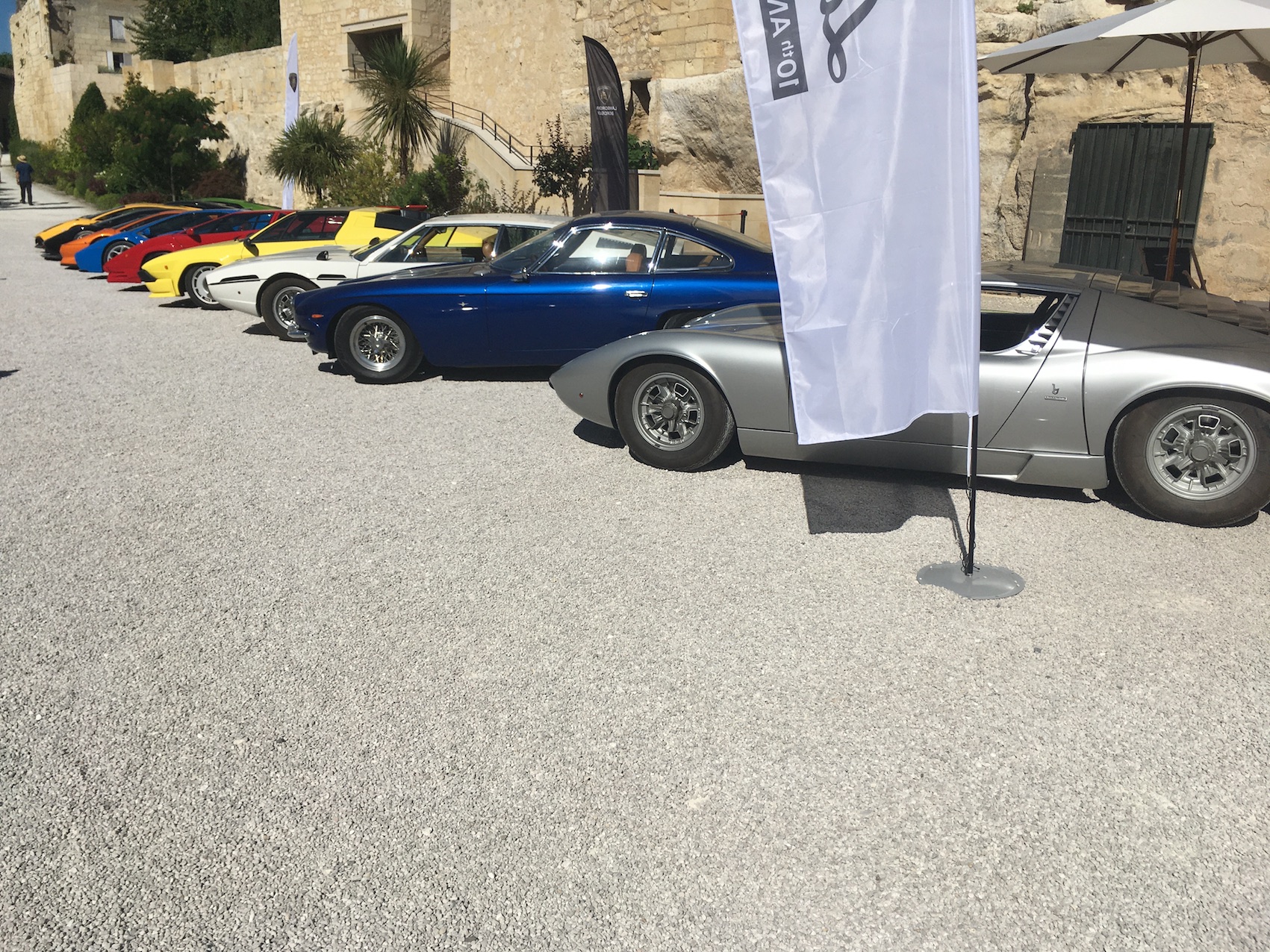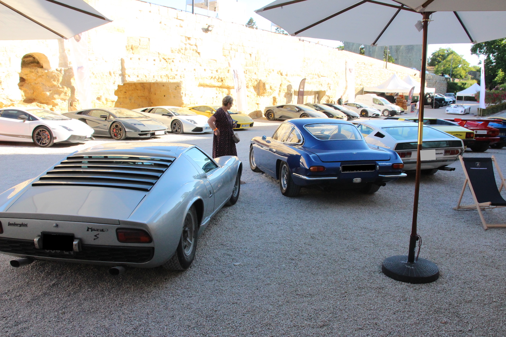 Super manif, mais caniculaire... presque 50 Lambo avec Lambo Bordeaux en expo, mais aussi Masettes dont spider Khamsin,