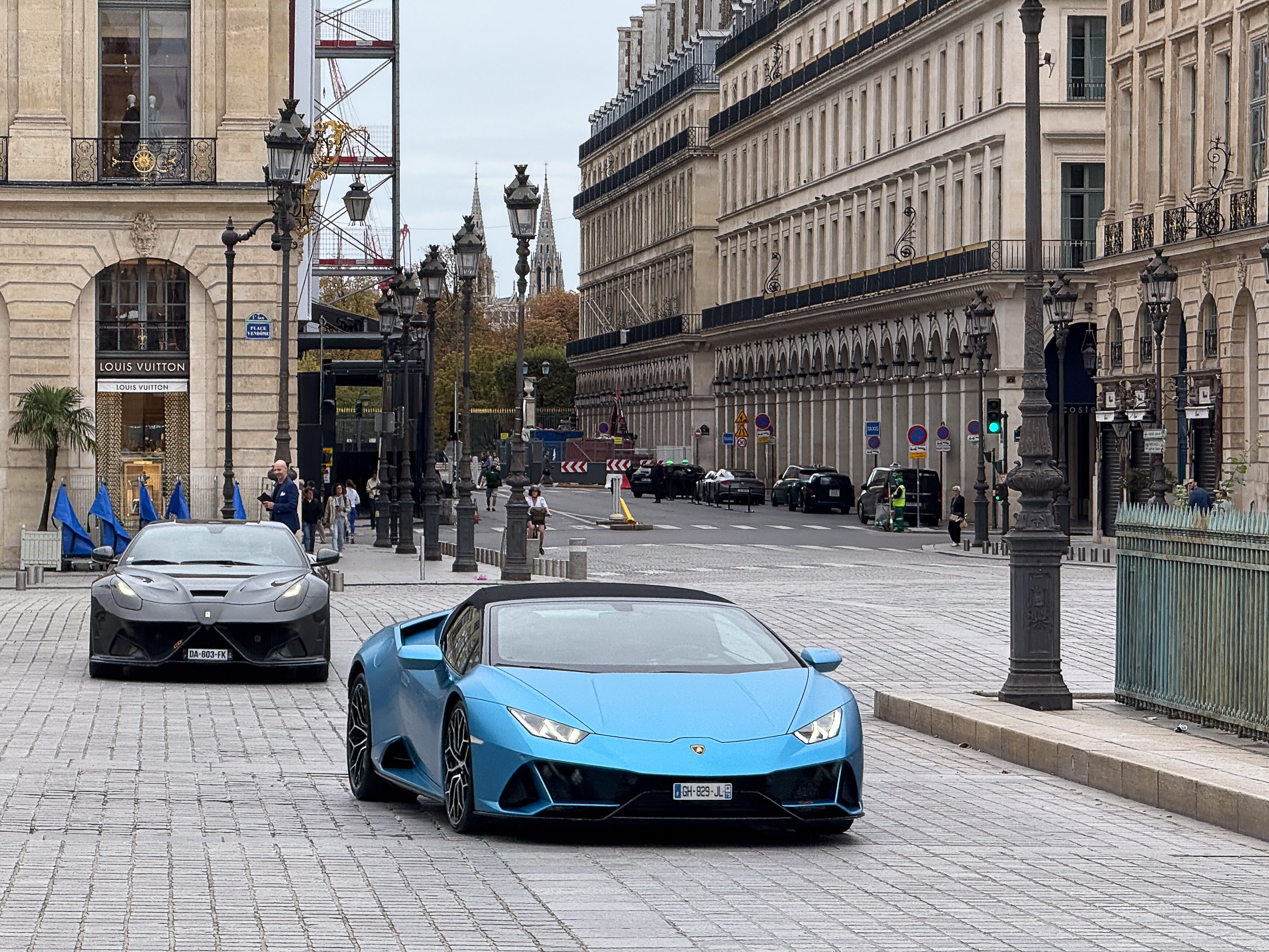 Quelques voitures aux Invalides avec La traversée de Paris.