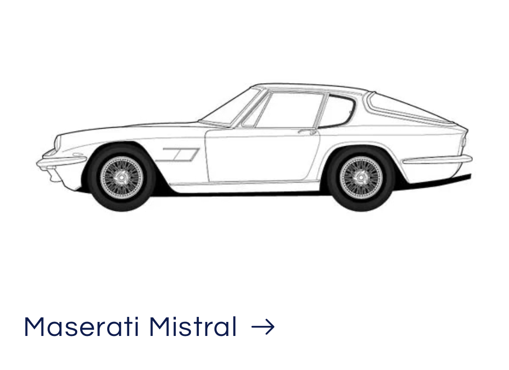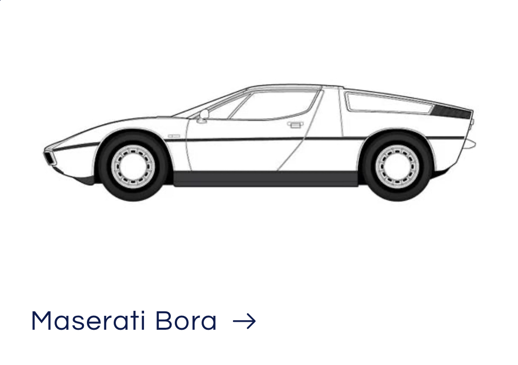 voici, sur le site de l’Officina Candini, toute une série de dessins de Maserati classiques (les Biturbo jusqu’à la 3200GT sont maintenant rangées dans les classiques !).