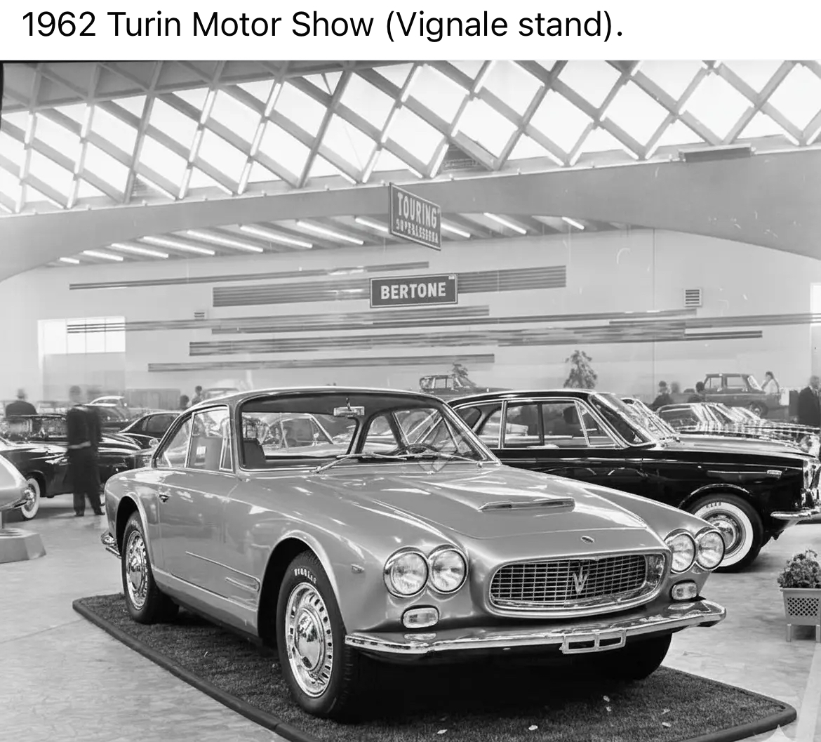 Belles photos rapportées sur les réseaux par Charles-Henry Couvrat montrant la ligne chromée sur l’extracteur d’air des prototypes du salon de Turin 1962 :