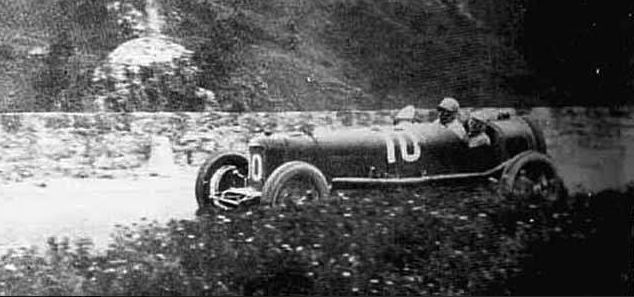 Ernesto Maserati en pleine action au volant d'une Tipo 26 à la Targa Florio 1927 :