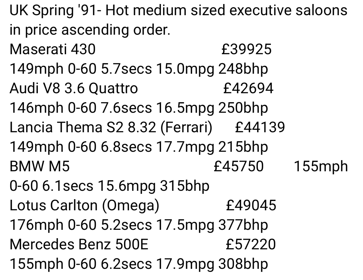 La 430 avait, en 1991, le meilleur rapport accélération / prix en Angleterre :