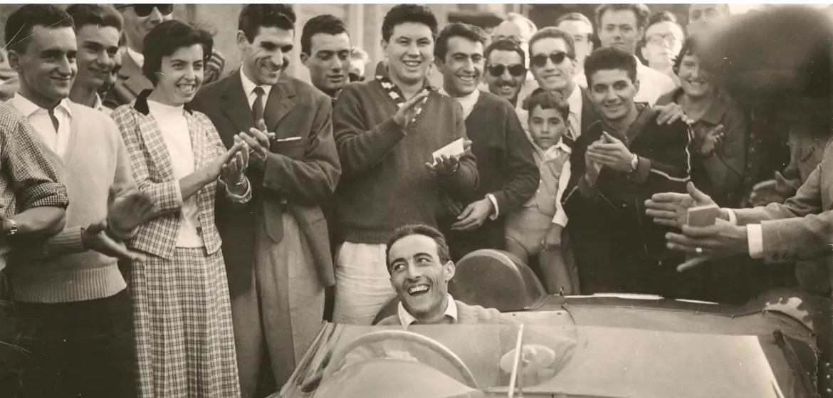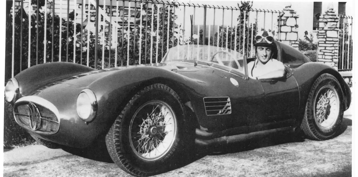 Né à Cento près de Ferrara (la ville qui a aussi vu naître Ferruccio Lamborghini à 45 mn de Modena vers l’Adriatique), il court dans les années 50 d’abord sur Fiat 1100 puis sur Alfa Romeo Giulietta Sprint et enfin sur Maserati A6GCS53 avec laquelle il participe aux Mille Miglia 1957 et avec laquelle il parvient sur le circuit de Vallelungua à battre Luigi Musso sur Ferrari.
