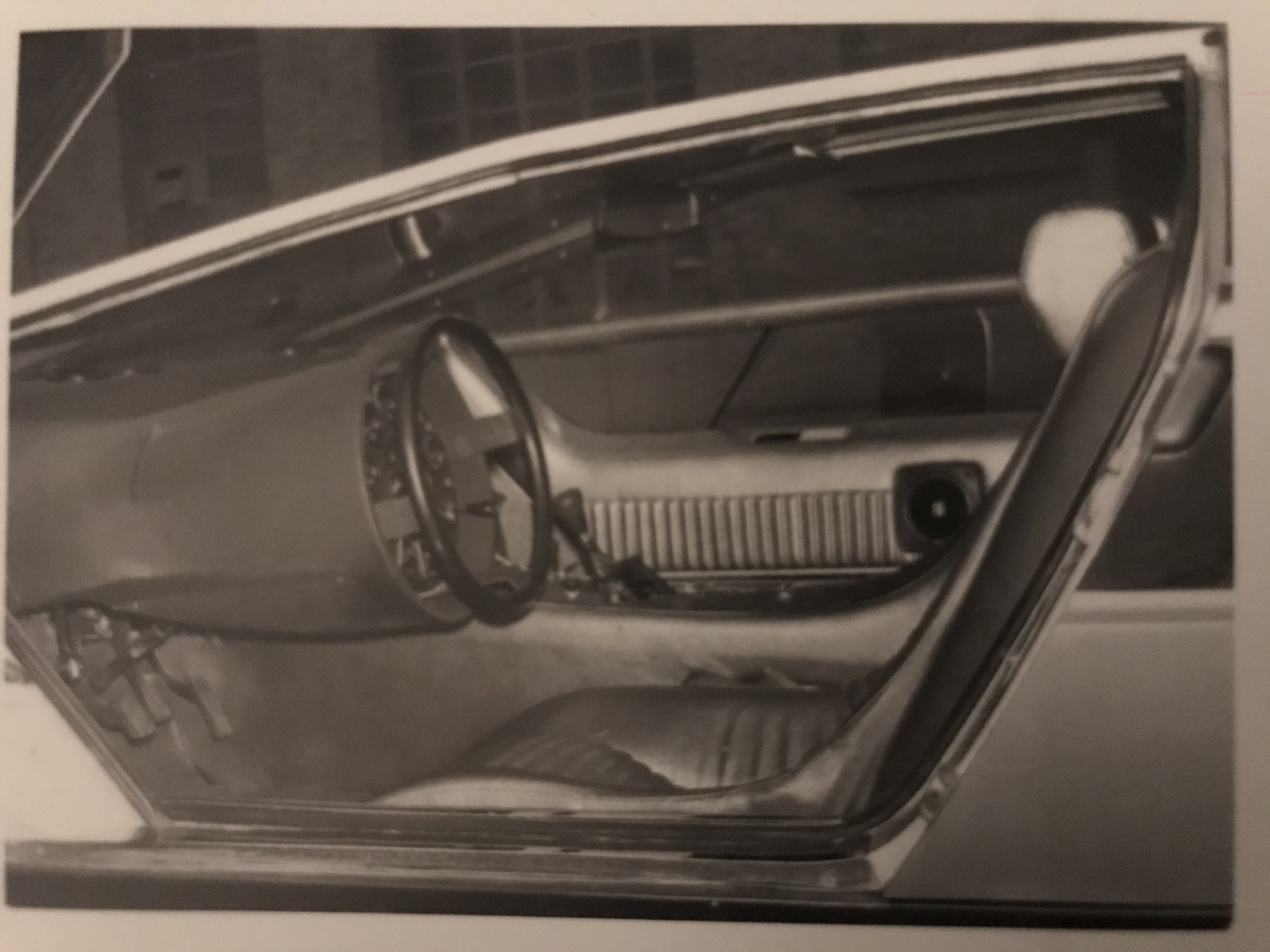 Voici une autre exceptionnelle photographie de la Boomerang en cours de motorisation lors de l'hiver 1972. Notez le vase d'expansion du liquide de refroidissement en haut à droite et le volant encore traditionnel :