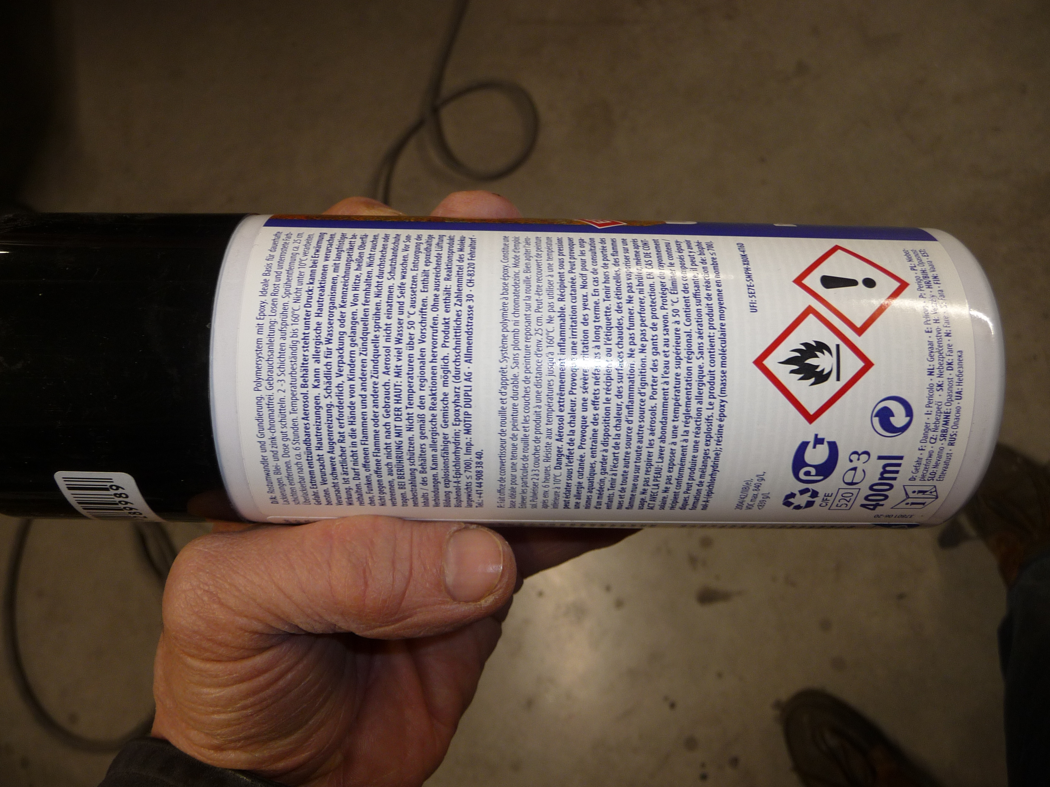 C'est un convertisseur de rouille, donc toujours à base d'acide phosphorique, qui va transformer la rouille en une couche de phosphate passivante et adhérente à l'acier