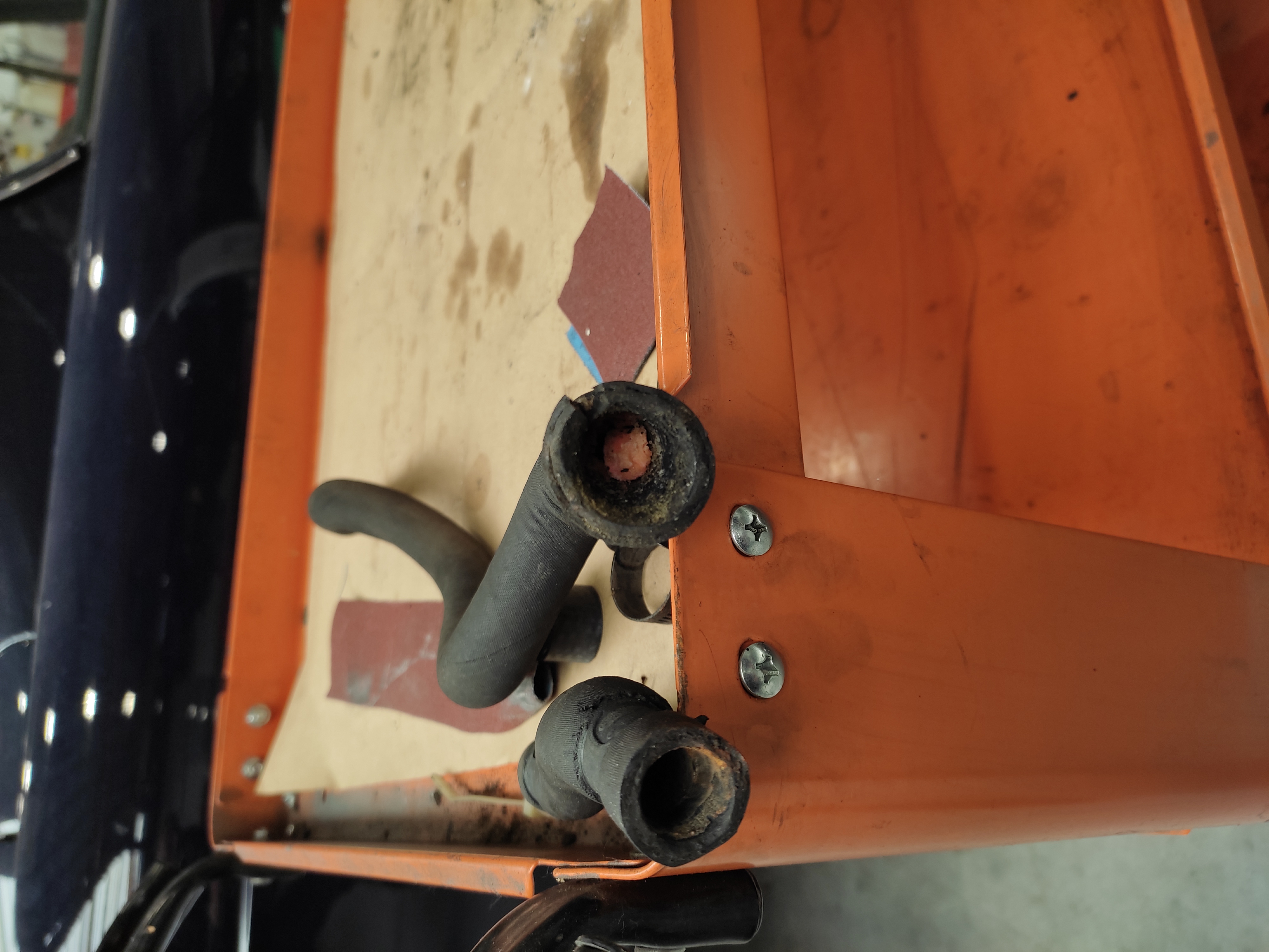 Ici à droite un exemple de durite où on voit encore les résidus secs à l'intérieur jusqu'au centre: