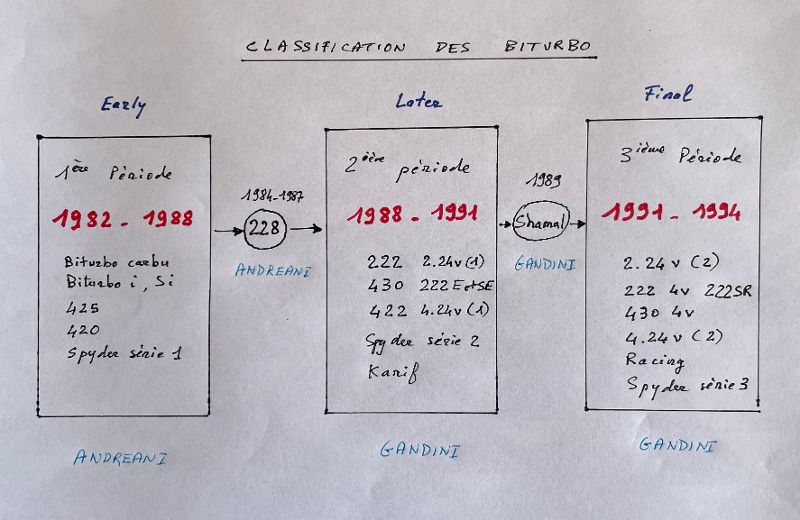 Belle Biturbo de première génération avec le bord d'attaque des ailes carré, avant la retouche par Gandini sur 222.
