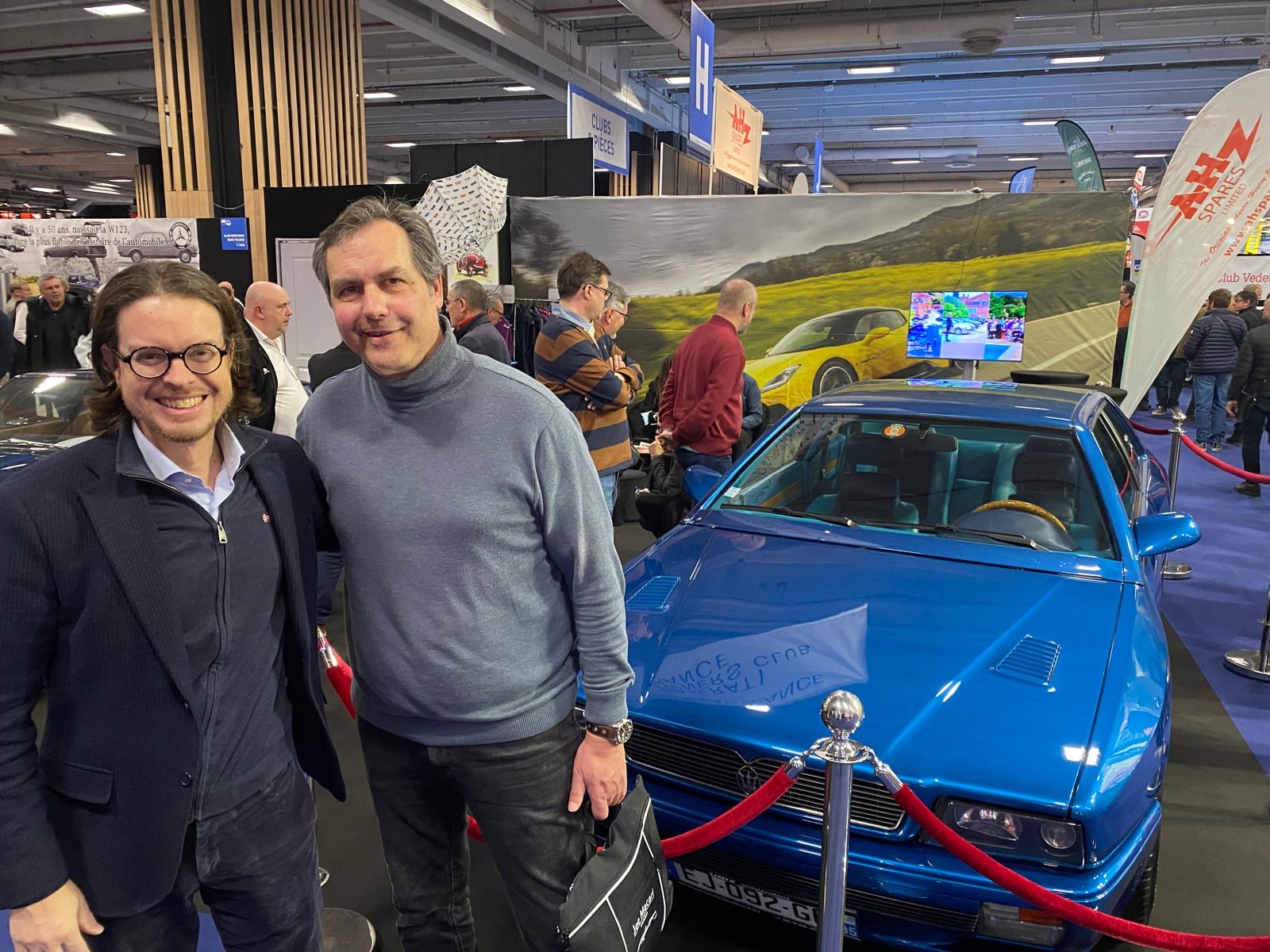 Ravi également d'avoir pu échanger avec deux Maseratistes devant la MC12 du stand Joe Macari.