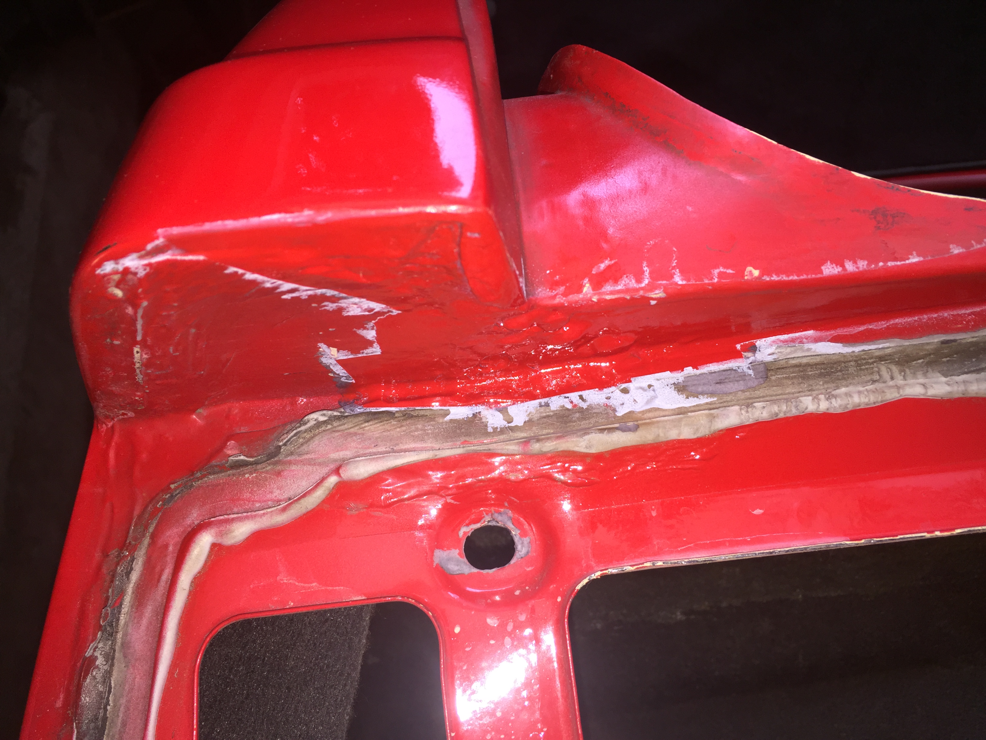 Masahiro a eu le meme probleme sur sa 222 4V rouge. Si c'est possible vous pouvez essayer de voir si le bas de la fenetre arriere cachée par le cache plastique ne se mange pas de l'intérieur...