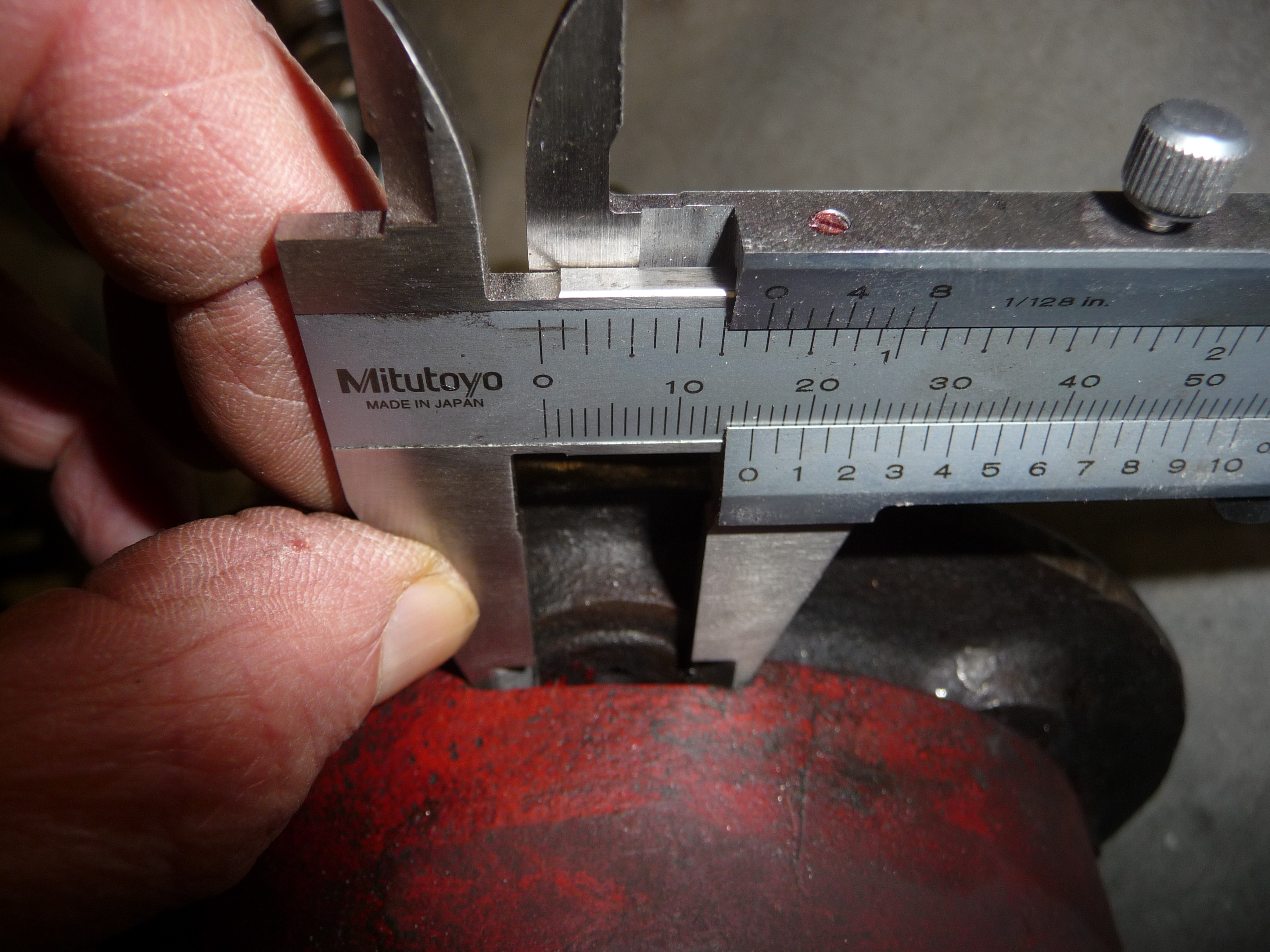 Une photo ici montrant de combien la mesure de la sortie est plus large par rapport à la partie filetée en 14: