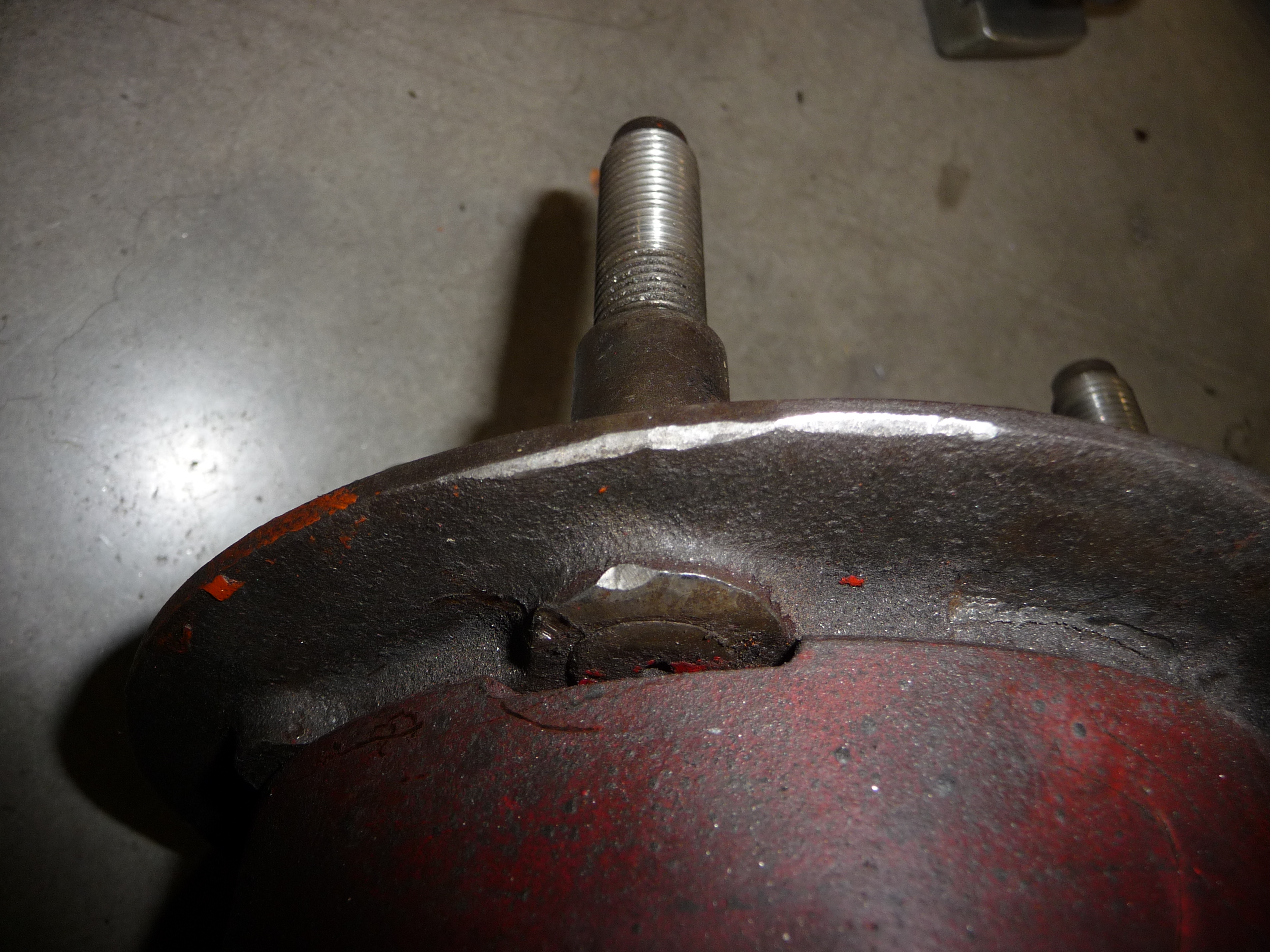 Profitant hier d'un démontage de moyeu de mon Indy lors de la réfection de son freinage, j'ai vérifié l'insertion des goujons dans le flasque du moyeu en vue de leur démontage.