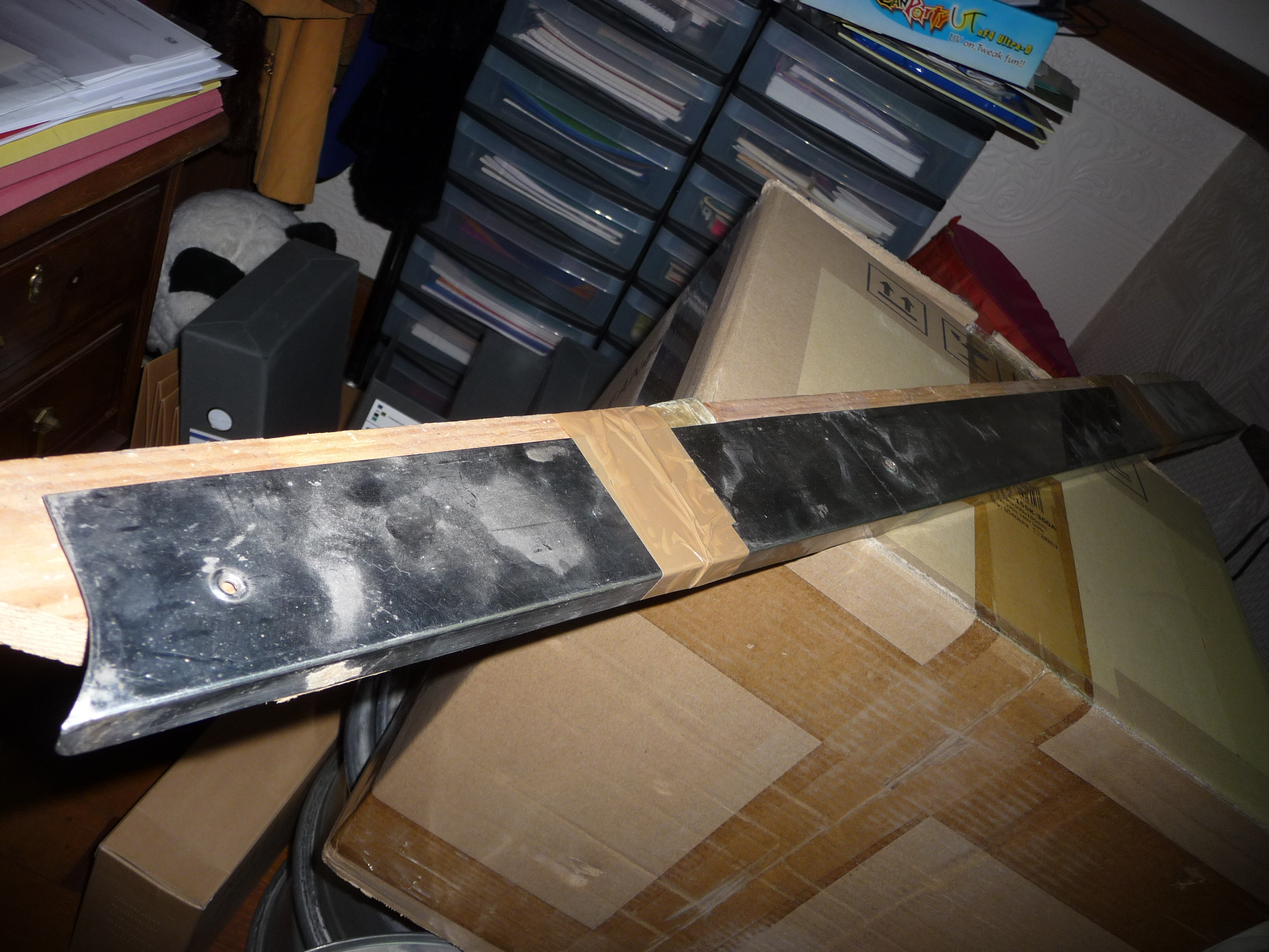 La voici, encore attachée au bout de bois auquel elle a été attachée pour la protéger pendant l'envoi.