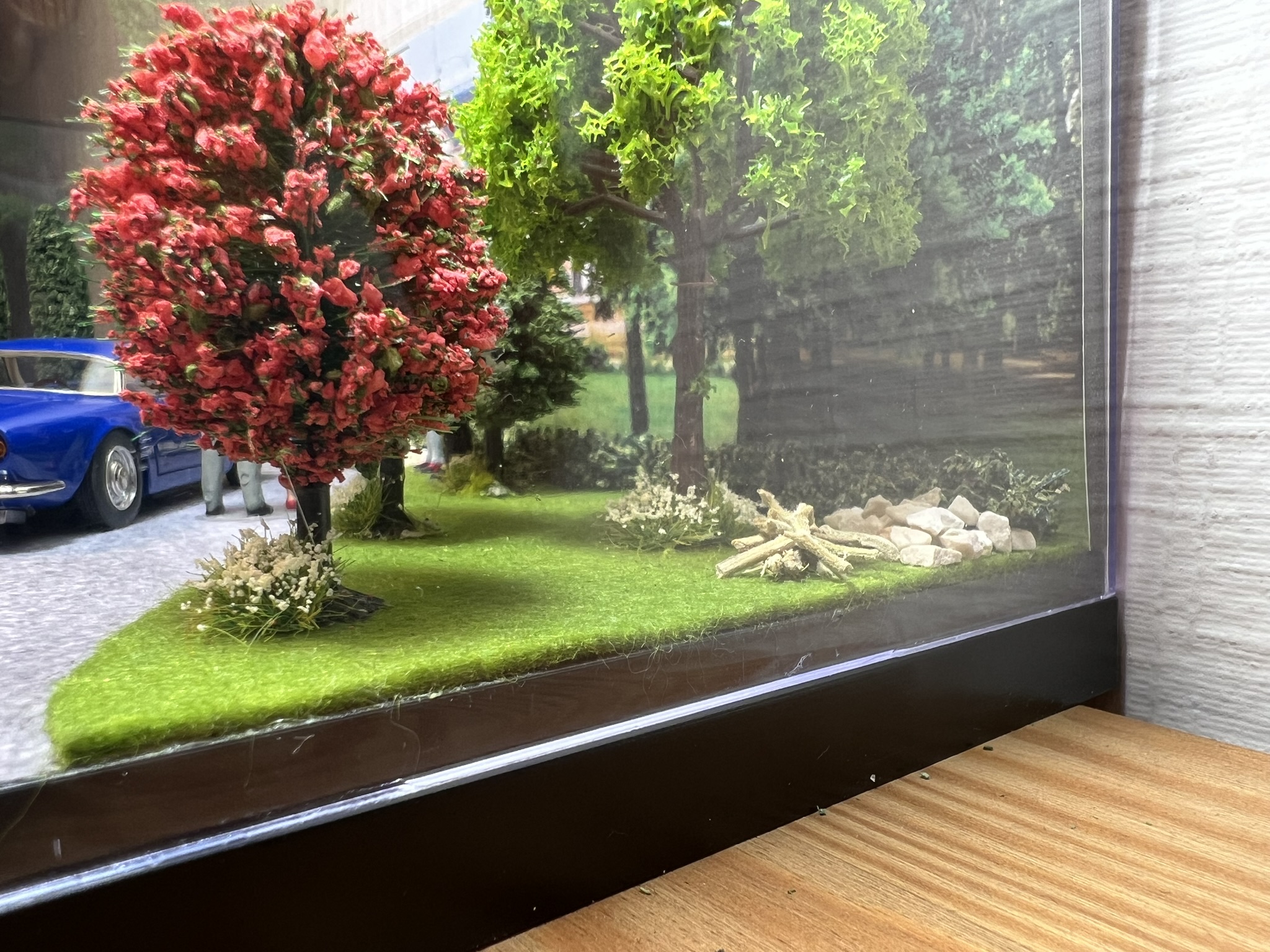 J'ai fait un diorama aujourd'hui, en vue d'un événement spécial que j'organise et qui approche. J'ai aménagé une vitrine pour miniature 1/18.