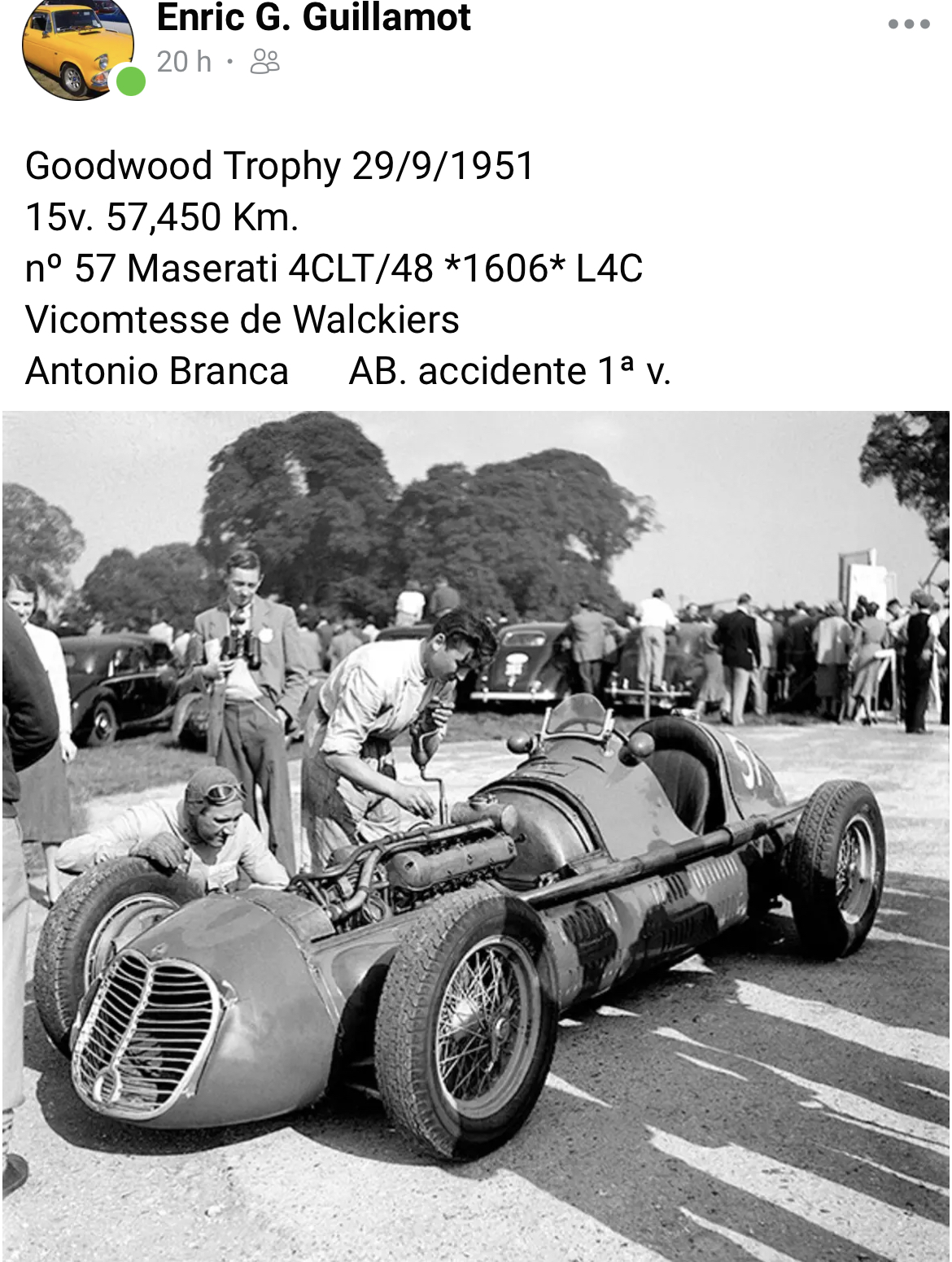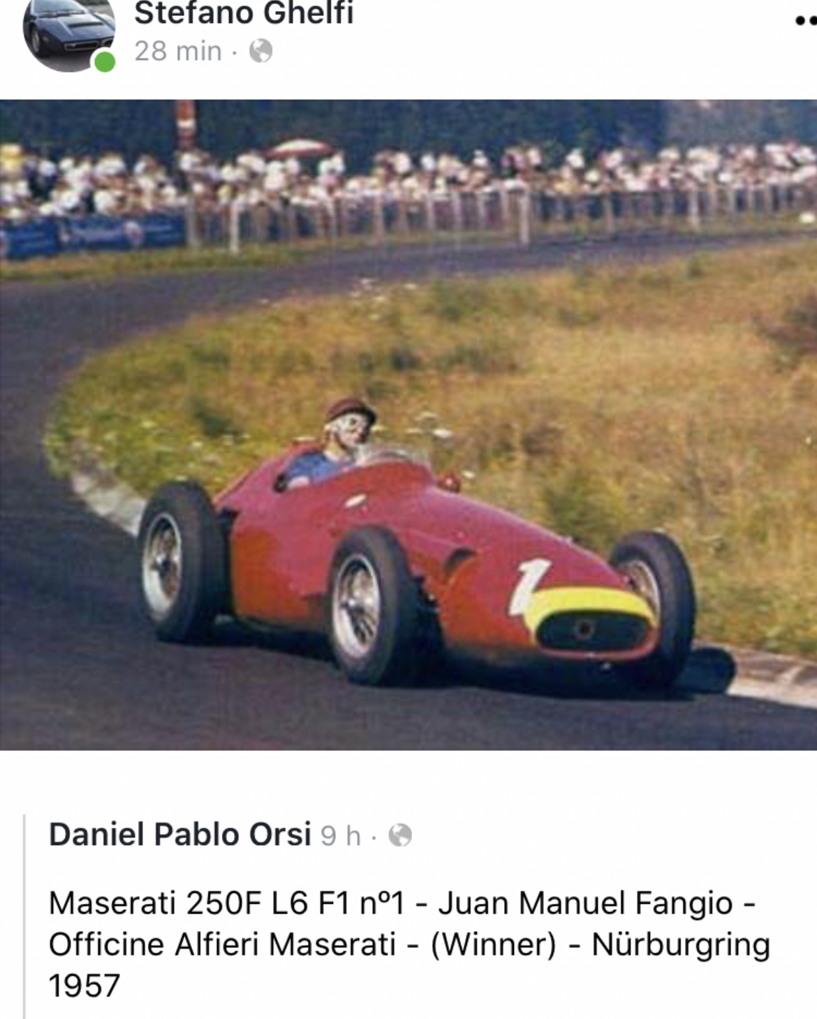 A l’époque de la 250F, Ermanno Cozza rodait et réglait sur le banc d’essais les moteurs de 250F. Ci -dessous il y a 3 ans avec la Ghibli de Borgovini :