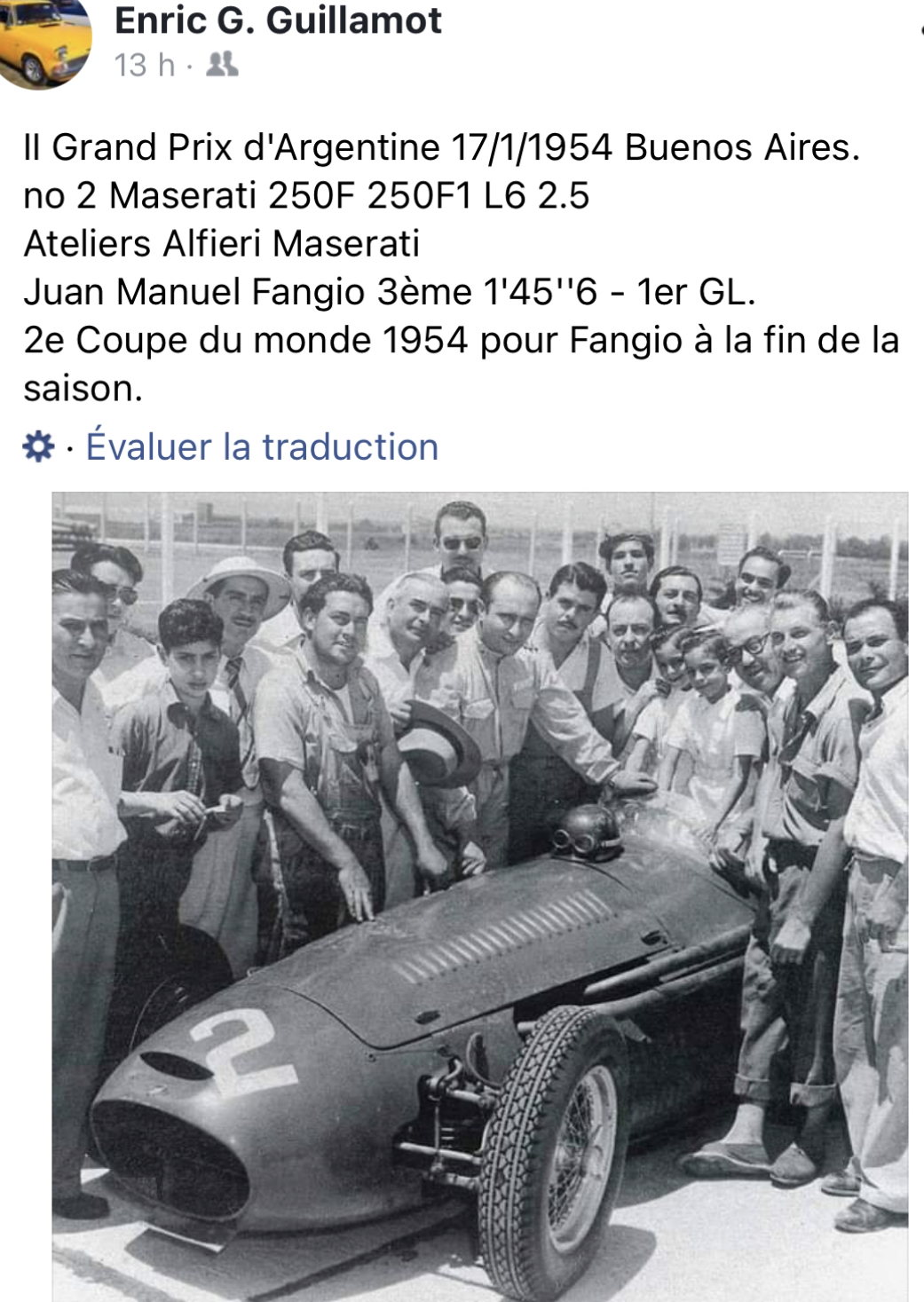 En attendant deux victoires début 1954 de Fangio sur la toute jeune 250F qui venait de naître et dont le moteur avait été réglé et rodé par Ermanno Cozza au banc d’essai le jour de Noël 1953 ! D’abord en Argentine en janvier 1954, comme c’était l’été dans l’hémisphère sud, ce grand prix ouvrait traditionnellement la saison de Formule 1 :