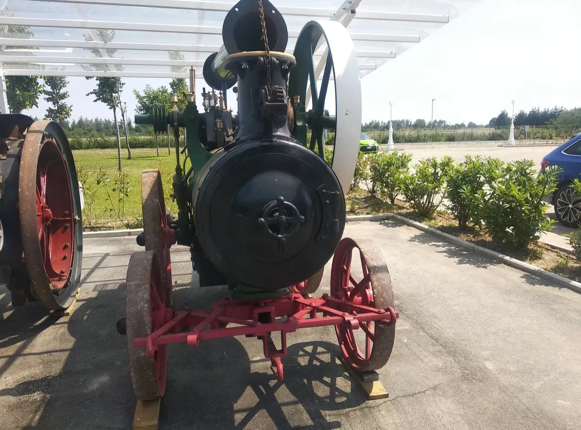 C’est vrai que l’ancien musée, c’était un vrai poème : un grand portail d’entrée digne de la série « Dallas », une longue allée de cyprès centenaires bordant des pâturages, puis toujours remontant cette longue allée des enclos couverts de part et d’autre avec des centaines de vaches laitières, l’usine de Parmesan Bio, le magasin et, tout au fond, le hangars du musée dont les piliers en fonte frappés du « fascio » de l’époque mussolinienne étaient ceux de la gare de Forlì. Et à l’intérieur, pas un centimètre carré sans décoration ! On était presque distraits des voitures !!!