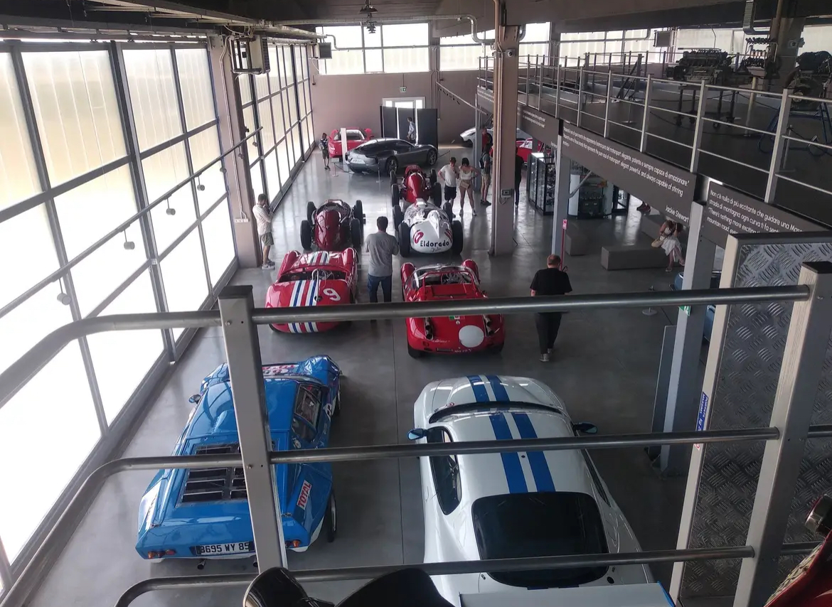 Merci Gemini pour cette vidéo qui montre parfaitement le nouveau musée Panini, très différent de l’ancien, très dépouillé, n’exposant que les voitures desquelles notre attention n’est pas distraite. La passerelle donne une bonne vision sur les carrosseries depuis le haut, c’est sympa. Il y a sur cette passerelle des moteurs à analyser plus précisément.