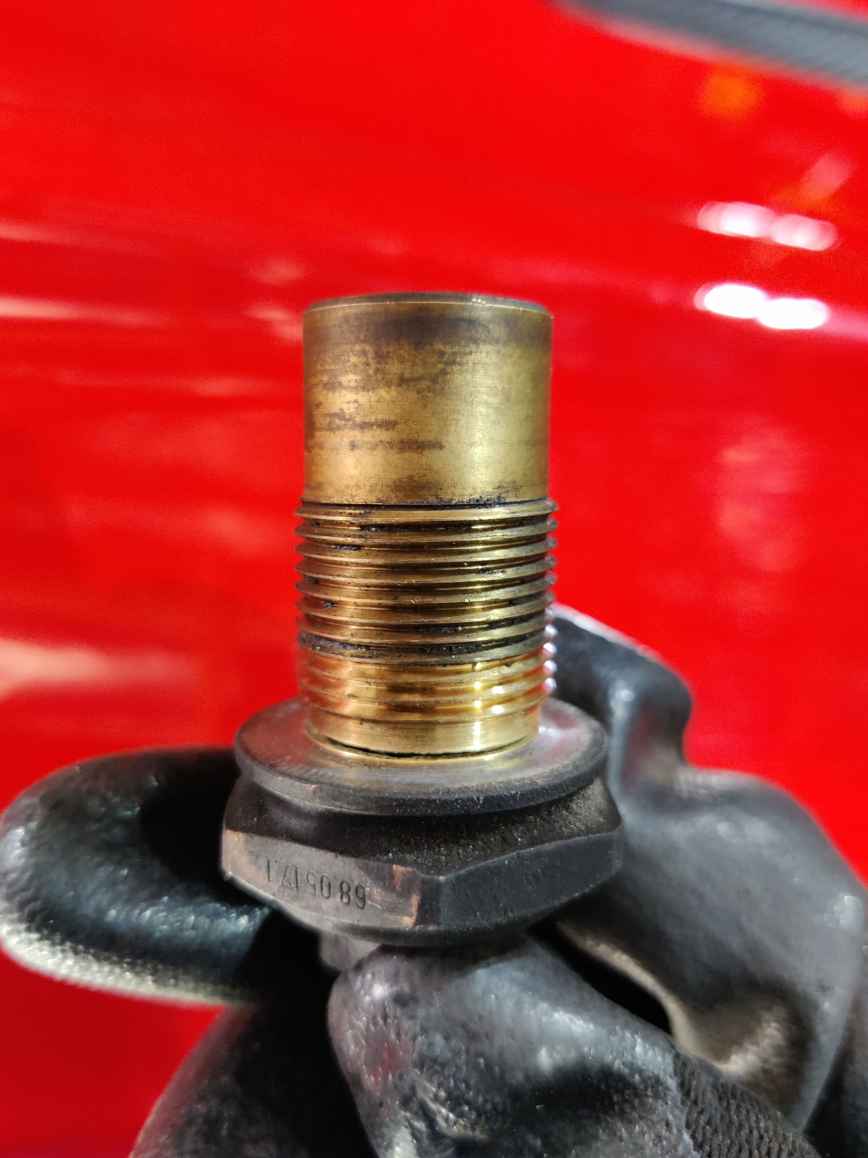 Déjà, c'est galère à enlever, il faut une clef de 32 (que je n'ai pas bien entendu), je sors la grosse pince multiprise, et surprise, ça se dévisse sans aucune résistance.