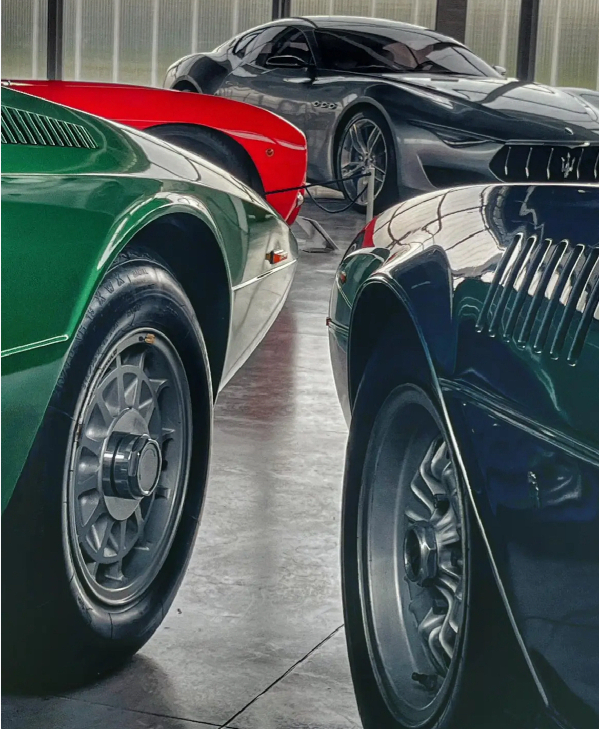 Nouveau musée Panini. De la gauche à la droite et de l’avant à l’arrière : Tipo 124, Simun, A6GCS53 Berlinetta Pininfarina et Alfieri.