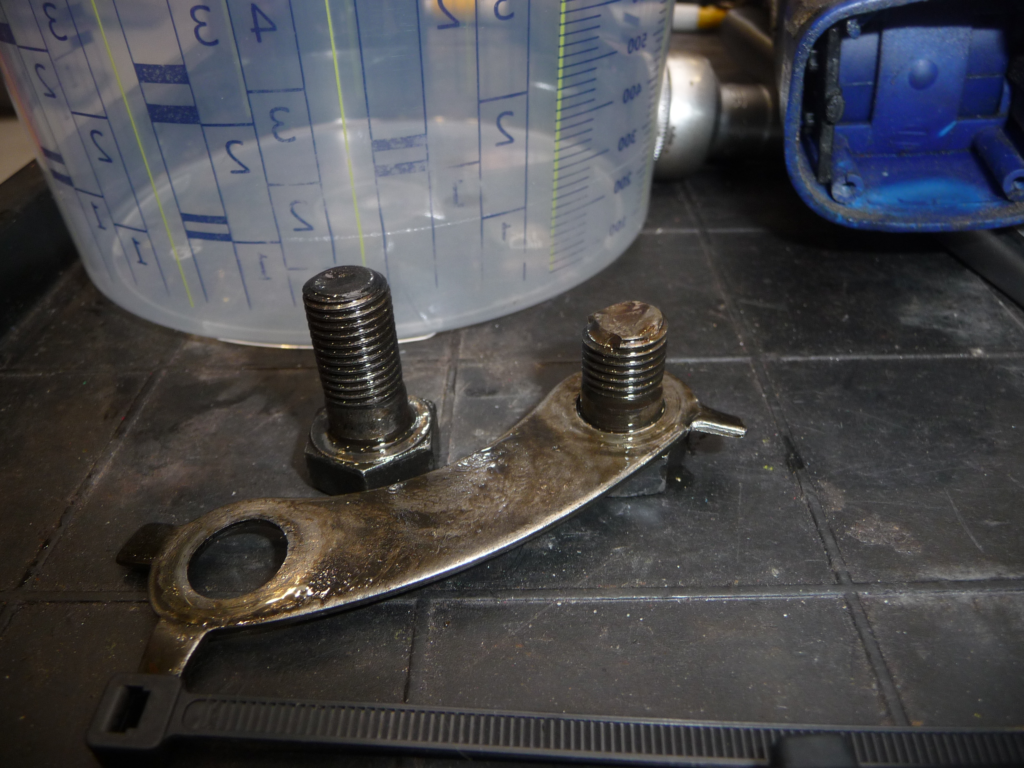 Mais ce qui est sûr c'est qu'au moins une des vis a déjà cassé sous les contraintes de cisaillement, peut-être d'autres sont dans le même état...