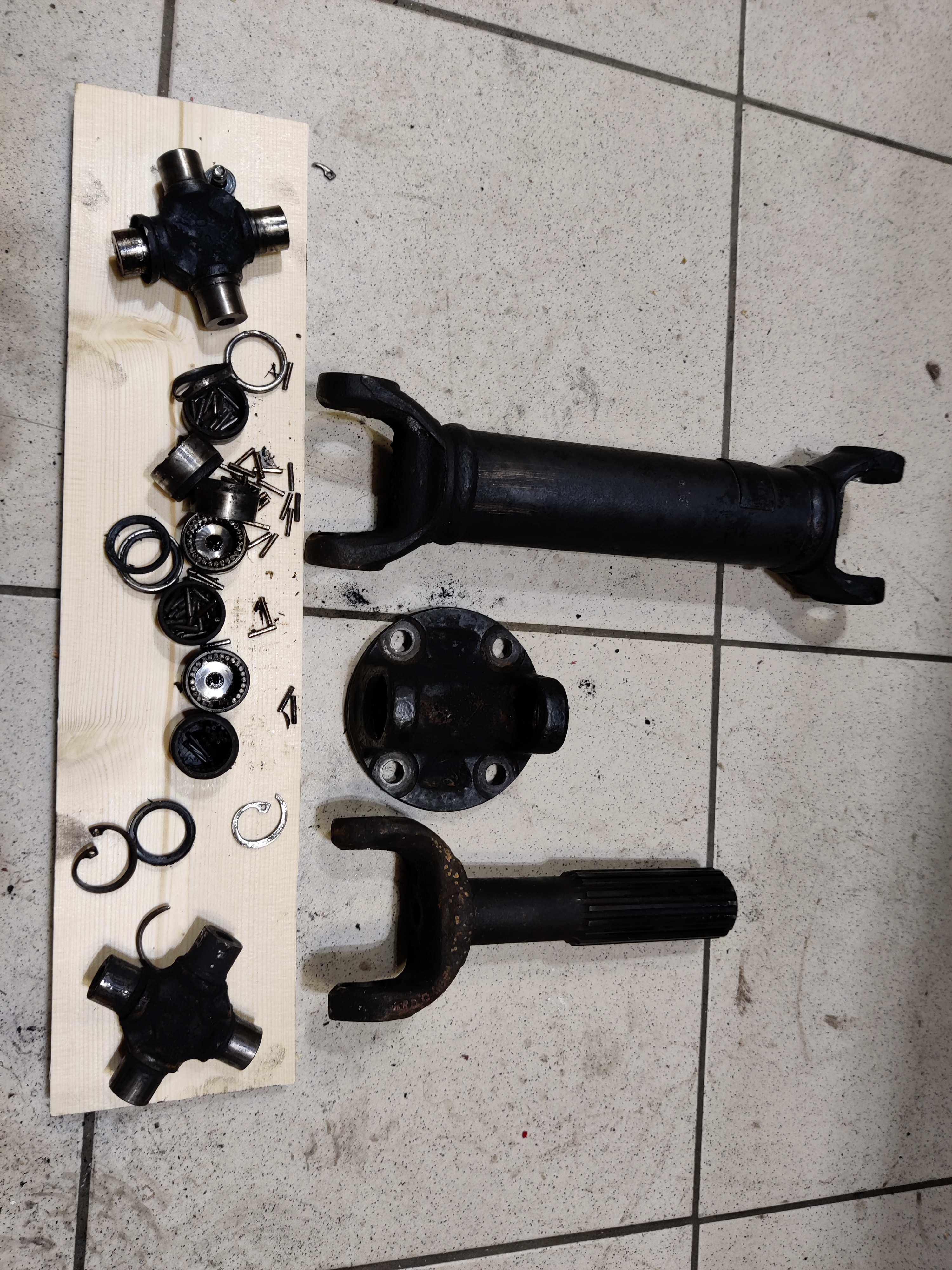 Reste à chasser le croisillon, il faut une presse, ça tombe bien, j'ai. Sur internet, vous voyez des gens faire ça avec un marteau ou autre (cherchez des vidéos u-joint replacement pour trouver), sur une maserati de 30 ans, vous pouvez oublier, sans presse, ça sera d'une galère sans nom (peut-être avec un étau, mais je doute)