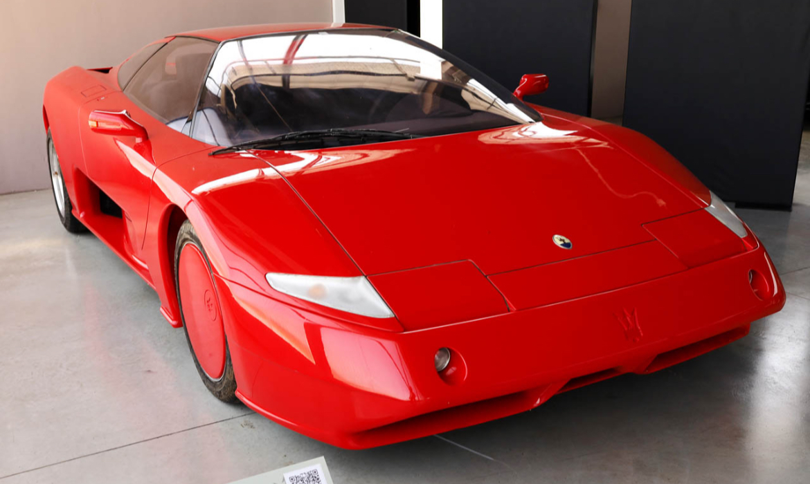 Matteo Panini (Blu jean bleu clair au centre) avec tous les designers de Stellantis venus voir le patrimoine esthétique Maserati. Peut être pour trouver l’inspiration pour dessiner la nouvelle petite Maserati qui va relancer la marque comme l’avaient fait la 3500GT en 1958, la Biturbo en 1982 et la 3200GT en 1998 ?