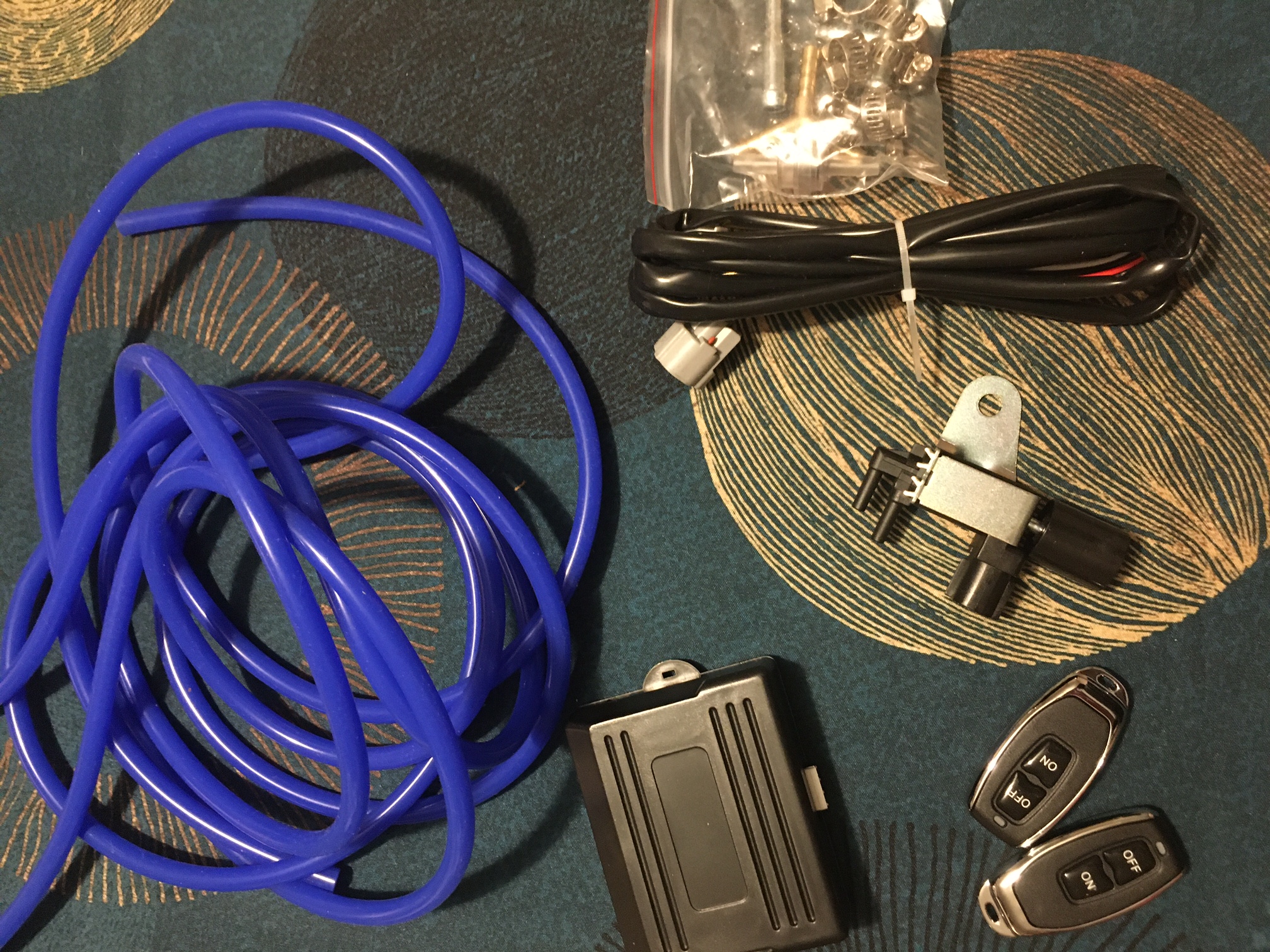 Le kit se compose d'une électrovanne pneumatique, un boitier de commande, le câblage électrique, un tuyau silicone qques accessoires de montage.