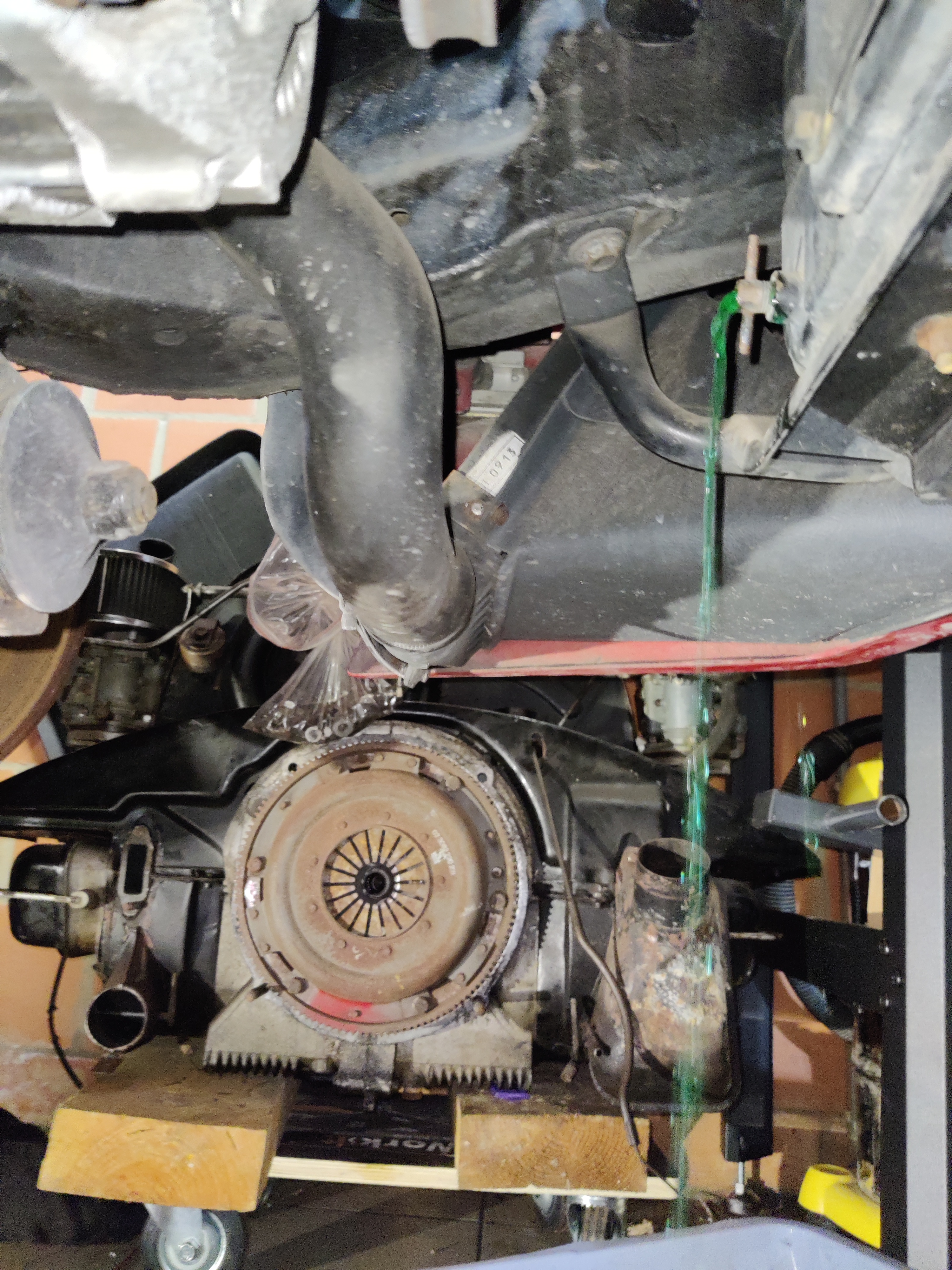 Pendant que les sièges sèchent, j'en profite pour vidanger l'huile et le liquide de refroidissement.