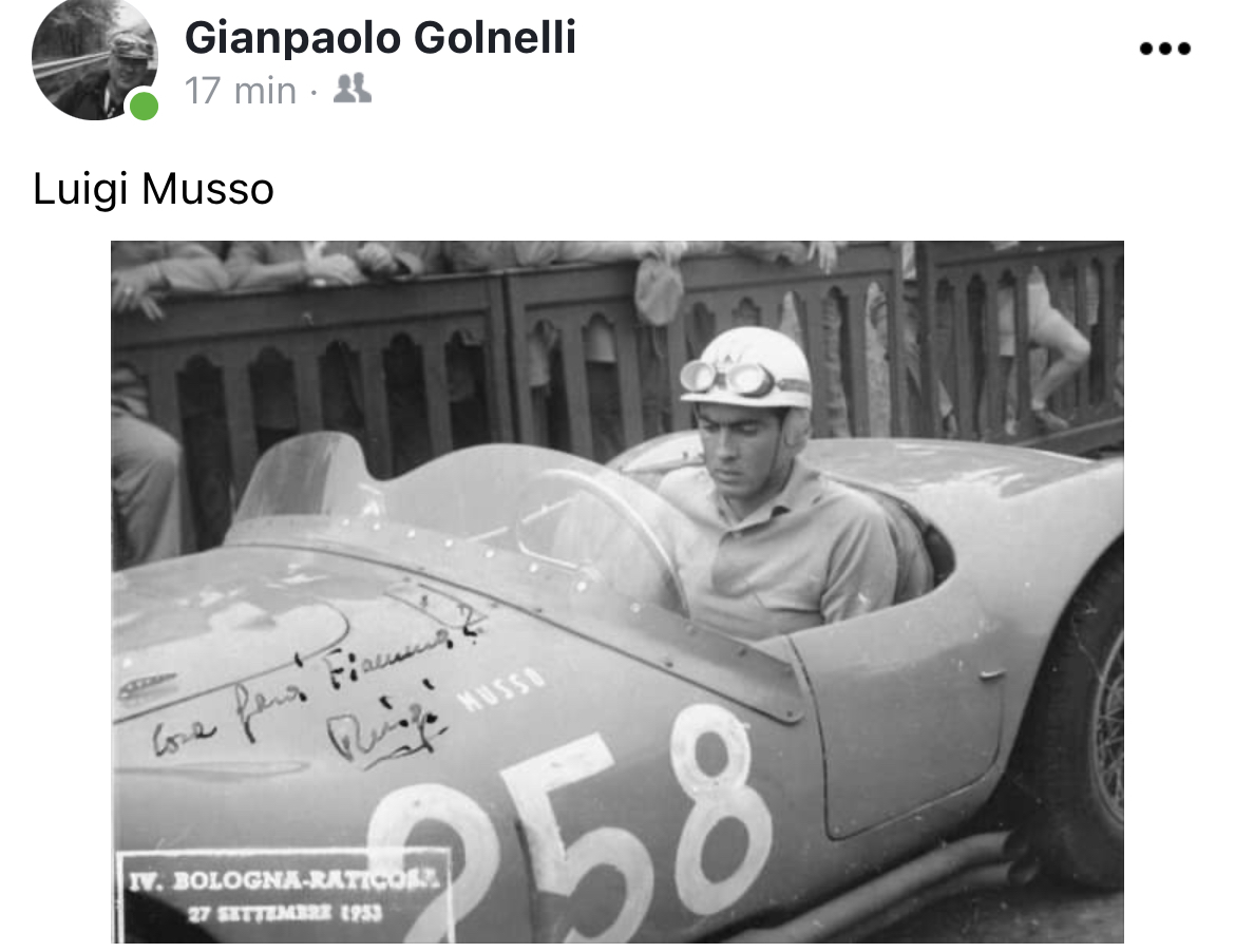 Le dédicace de Luigi Musso est intéressante : "cosa farà Fiamma ? Que fait Fiamma Breschi, sa petite fiancée, en ce moment ? Probablement ce à quoi il était en train de penser avant le top départ de cette course sur A6GCS/53.