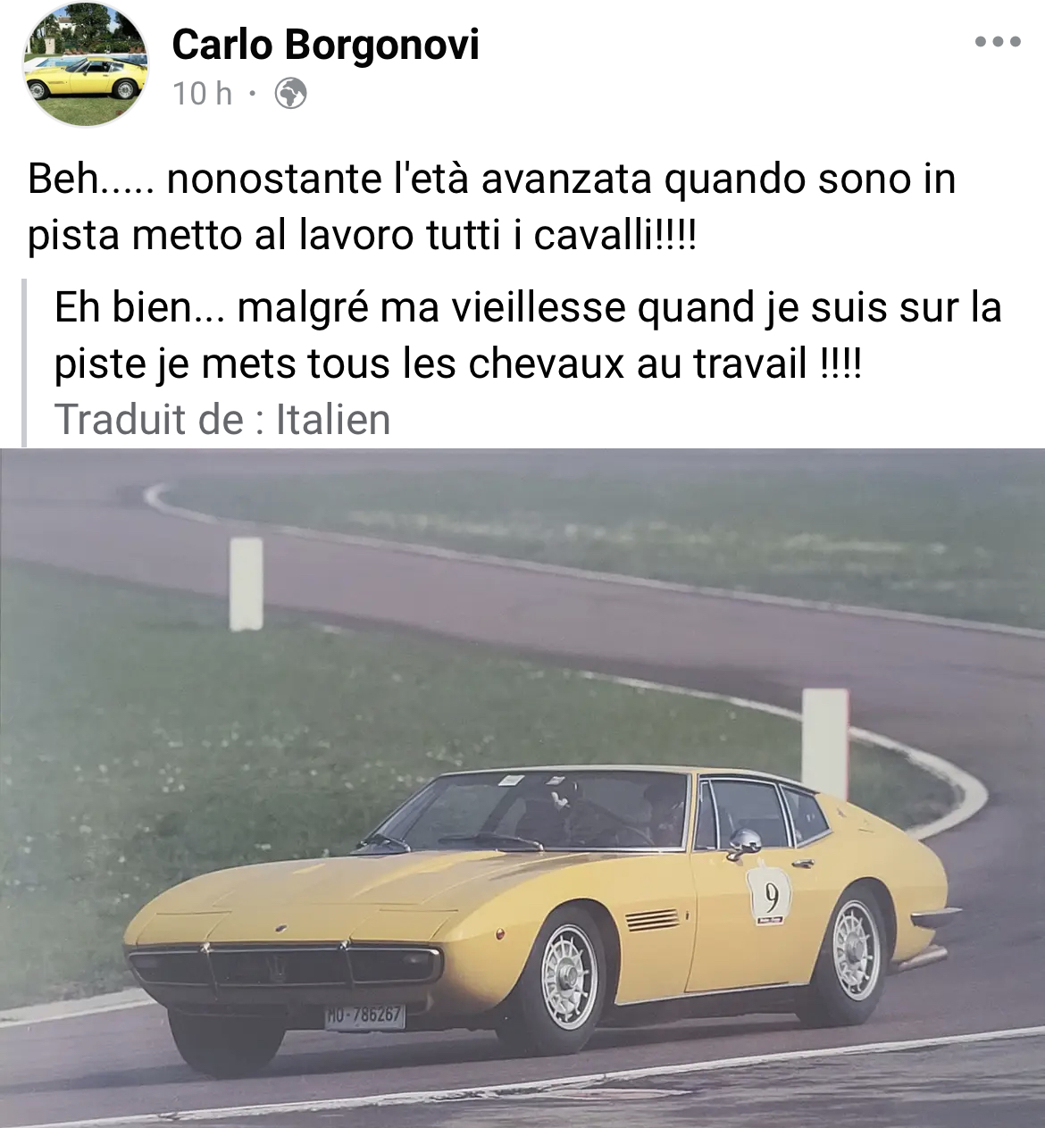 Quand mon ami Carlo parle de vieillesse, il veut dire l’âge avancé de la voiture !